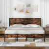 ● Industrial Slatted Headboard: The bed frame comes with a high headboard, which is thoughtfully designed for optimal comfort and also enhanced by distinctive slatted design that embodies industrial chic.