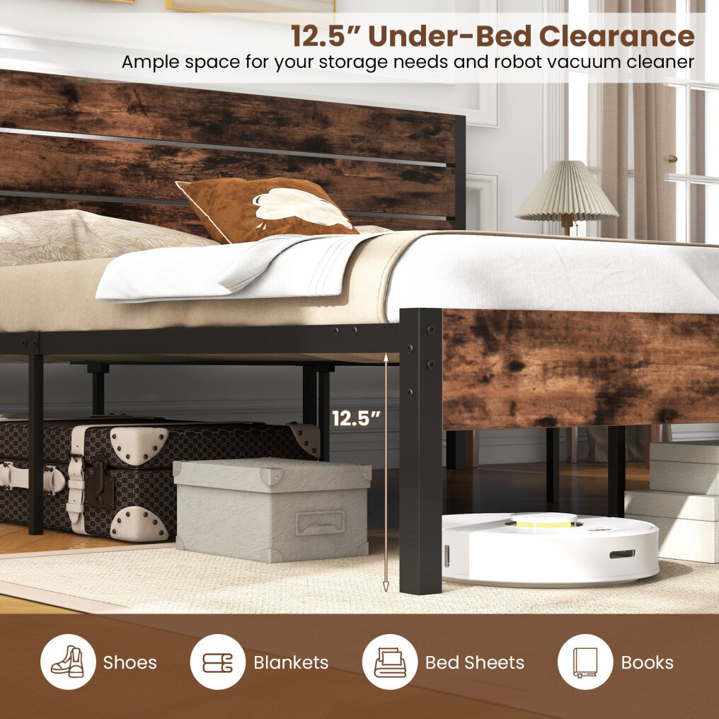 ● Ample Storage and Easy Cleanup: Enjoy the convenience of 12.5" high under-bed clearance, providing ample storage space and creating a spacious pathway for robot sweepers, making tidying up a breeze.