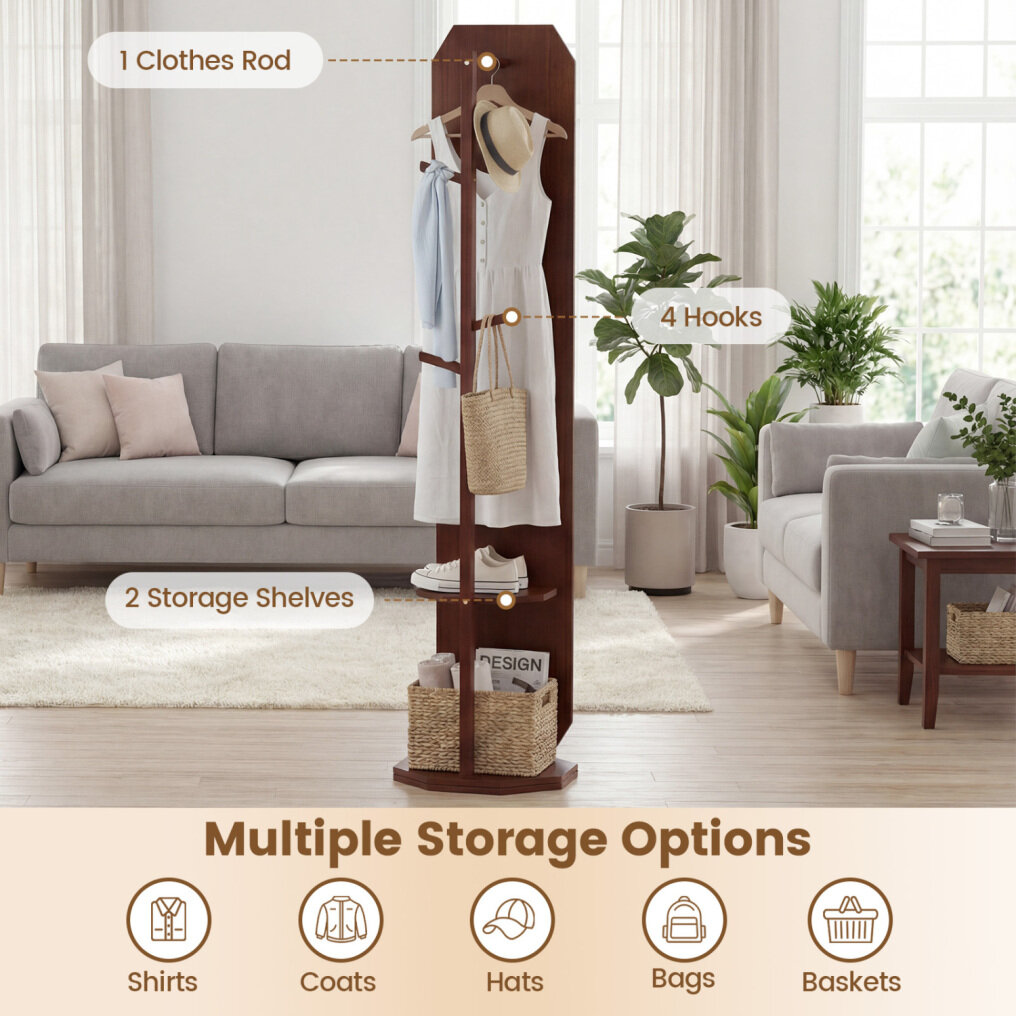 【360° Rotating Base】Thanks to its flexible 360° rotating design, you can easily adjust it to the desired angle and easily access items stored on hooks and shelves. Furthermore, it can be placed stably on the floor thanks to its anti-slip feet.