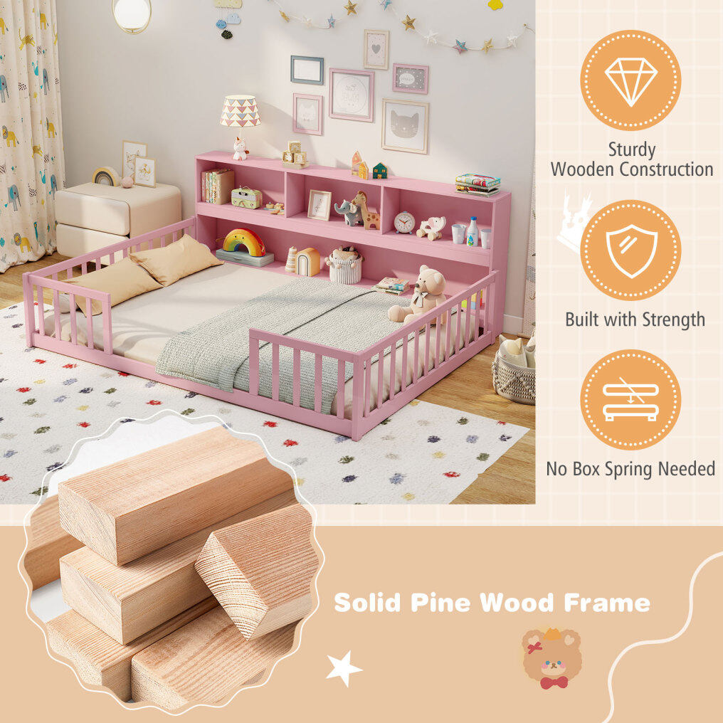 Full Size Montessori Floor Bed with Bookcase-Pink Sourcing Wholesale Supplier/Distributor | B2B Marketplace