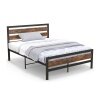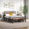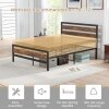 ● All-match Vintage Appearance: The platform bed base with headboard and footboard is adorned with rustic brown wood grain boards, which go well with the matte black metal frame for an industrial and vintage appearance, creating a warm and inviting atmosphere.