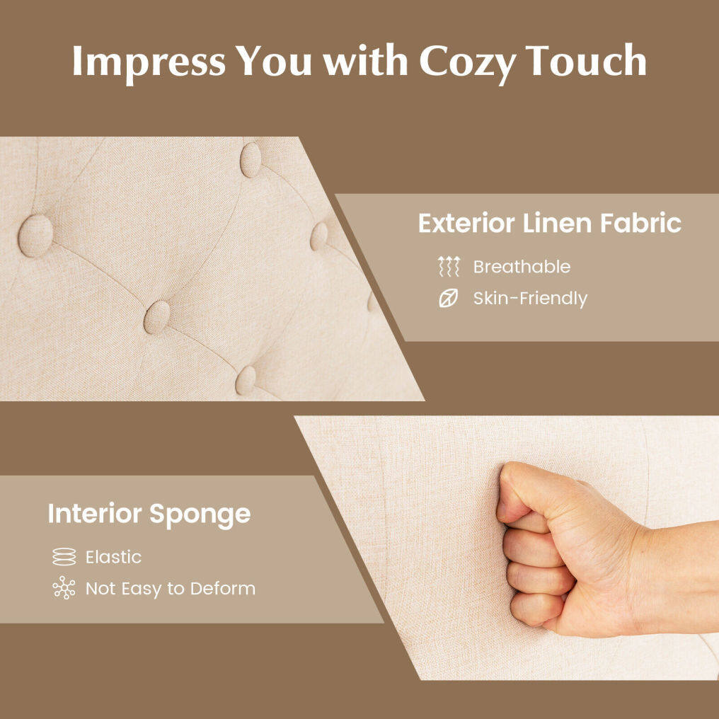 ● Comfy High Headboard: Filled with a high-density sponge, the headboard feels cozy and can be more comfortable for leaning on. Meanwhile, the exterior linen fabric shows better breathability and tear resistance to well balance comfort and durability.