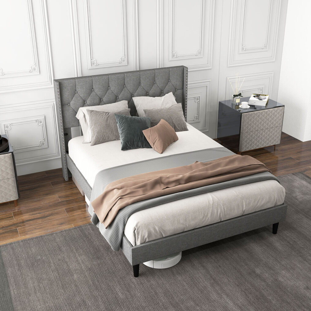 ● Unique and Aesthetic Appearance: Classic nailhead trim, rhombus pattern and tufted button add upscale aesthetic and deliver perfect visual effect, making up an elegant and understated appearance. Bring this bed home which strikes balance between functionality and stylish design.