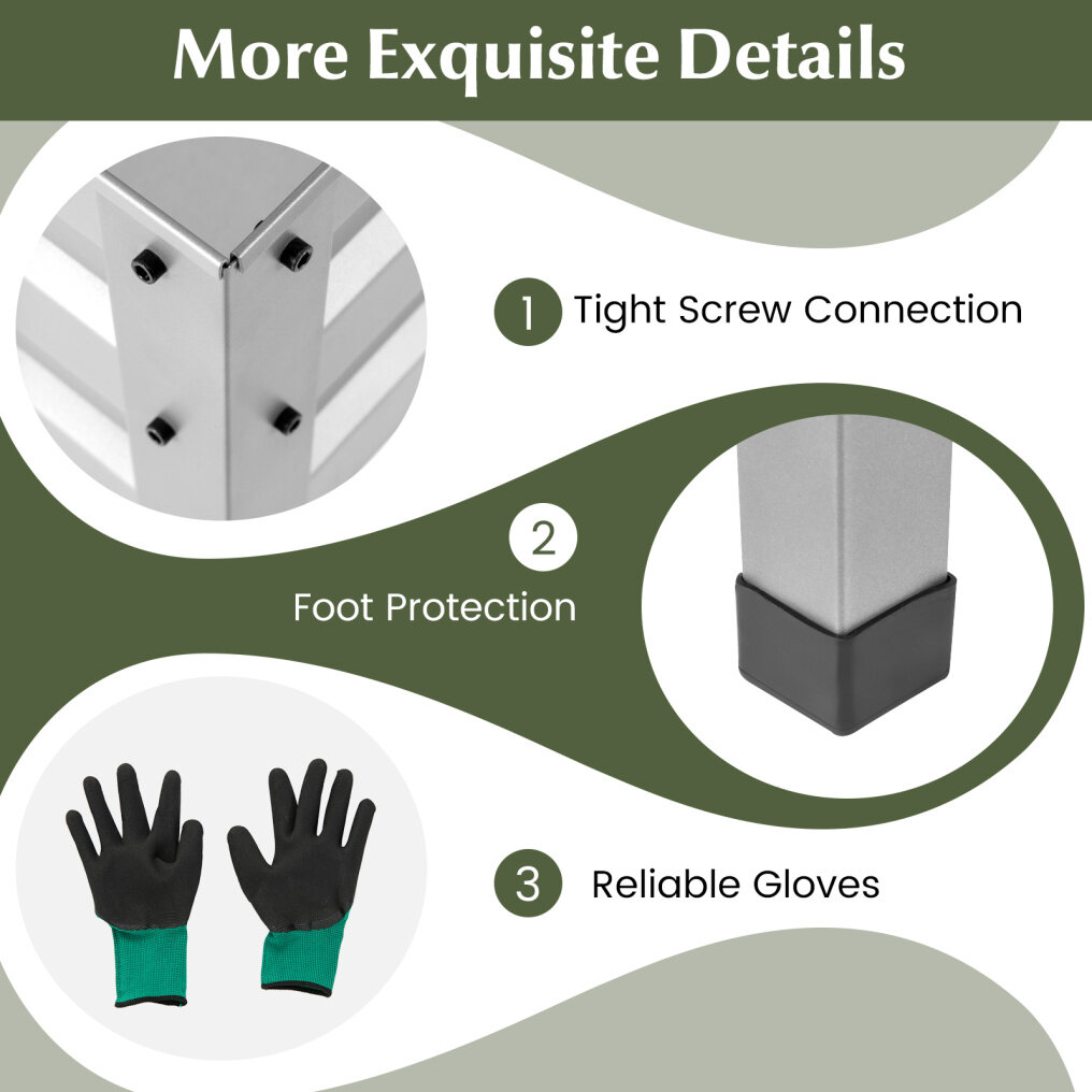 ● Solid Construction and Gloves Included: With reinforced structure and foot protection, this planter box offers strength and stability. Besides, it comes with reliable gloves to offer extra protection when you work in the garden.
