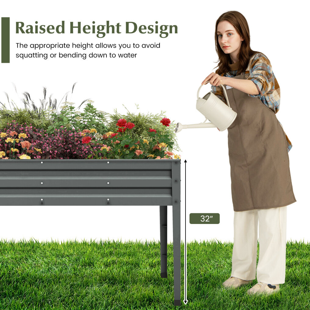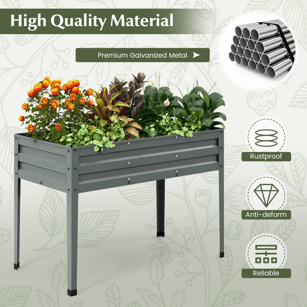 ● High-Quality Material: Crafted from premium galvanized steel, this raised planter box is rustproof and anti-deform for long-lasting use in various environments. Plus, the 4 sturdy metal legs offer reliable support to the entire frame.