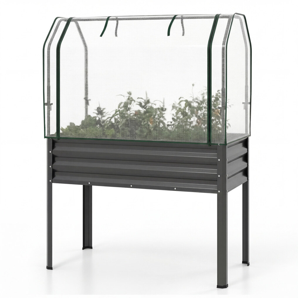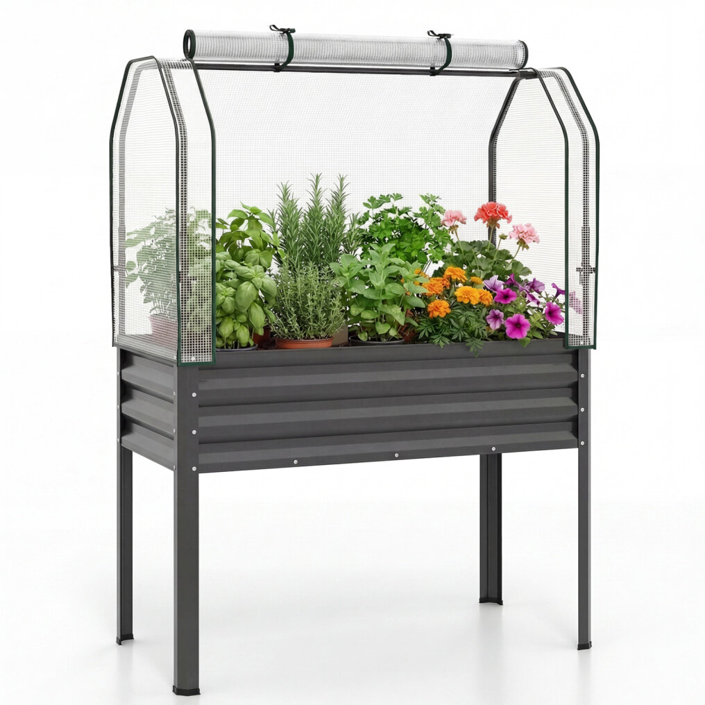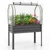 Galvanized Raised Garden Bed with Legs and Greenhouse Cover for Vegetable Flower-Gray
