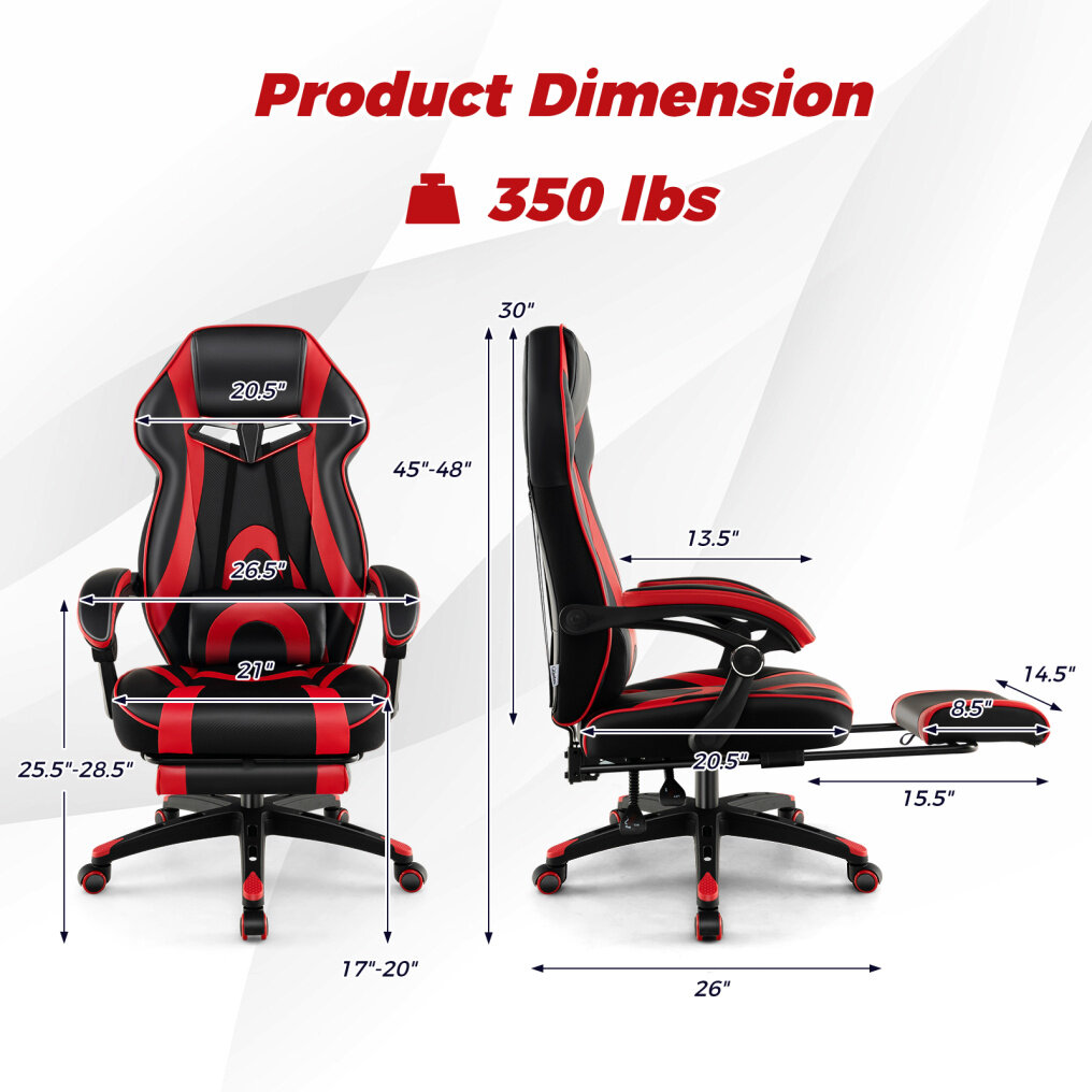 ● Sturdy Structure and Chic Design: Supported by a high-quality gas rod and stable 5-claw base, the reclining gaming chair is strong enough to hold up to 350 lbs. With the stylish and cool racing style, this ergonomic swivel chair can highlight your game room or home office.