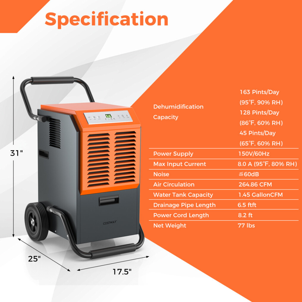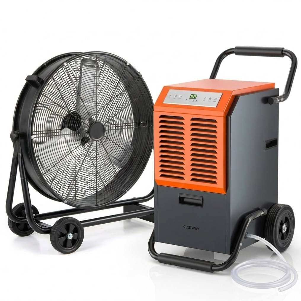 【This Bundle Includes 163-Pint Heavy-Duty Dehumidifier + 24" Industrial Drum Fan】