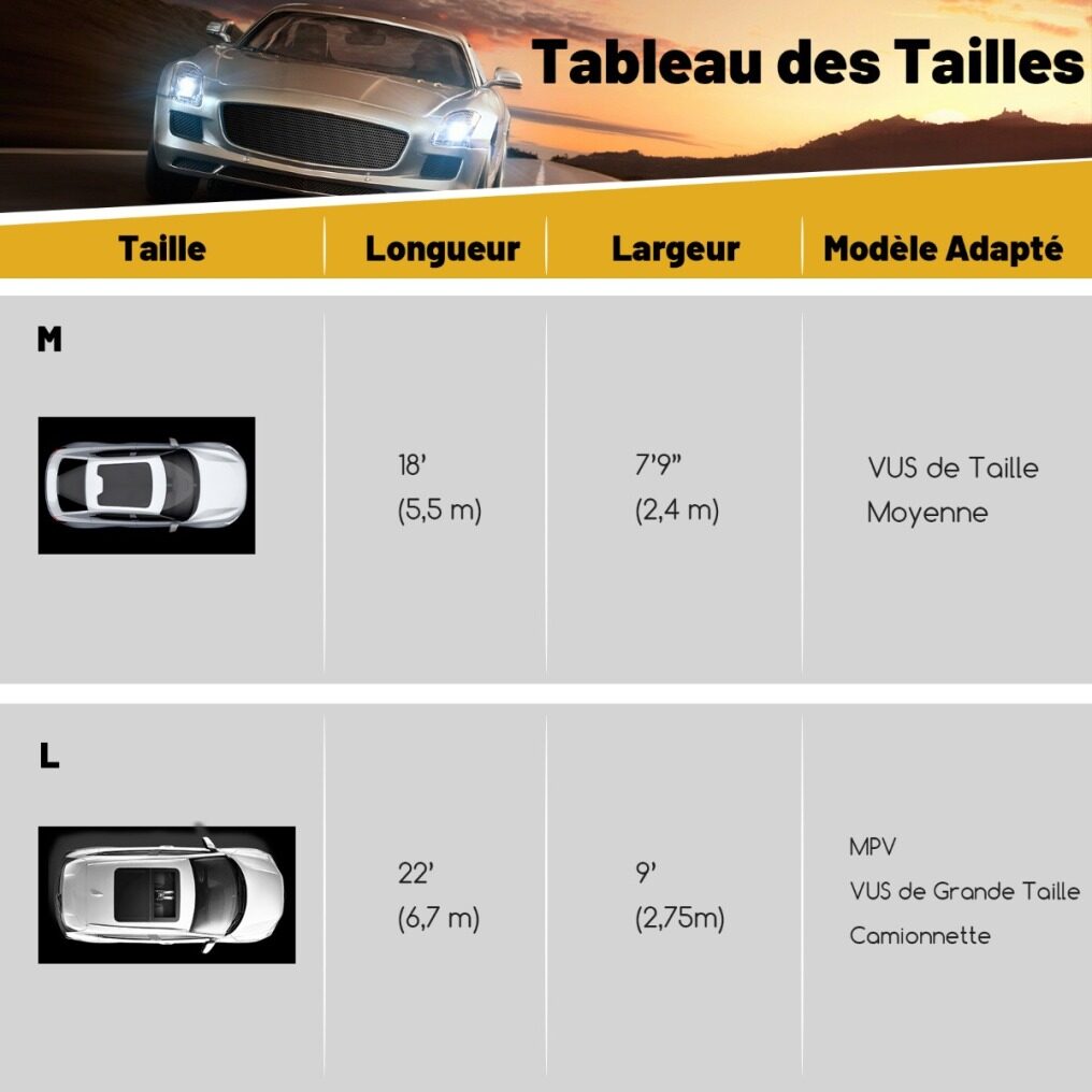 Large size (5.5 x 2.4 m) fits most mid-size SUVs