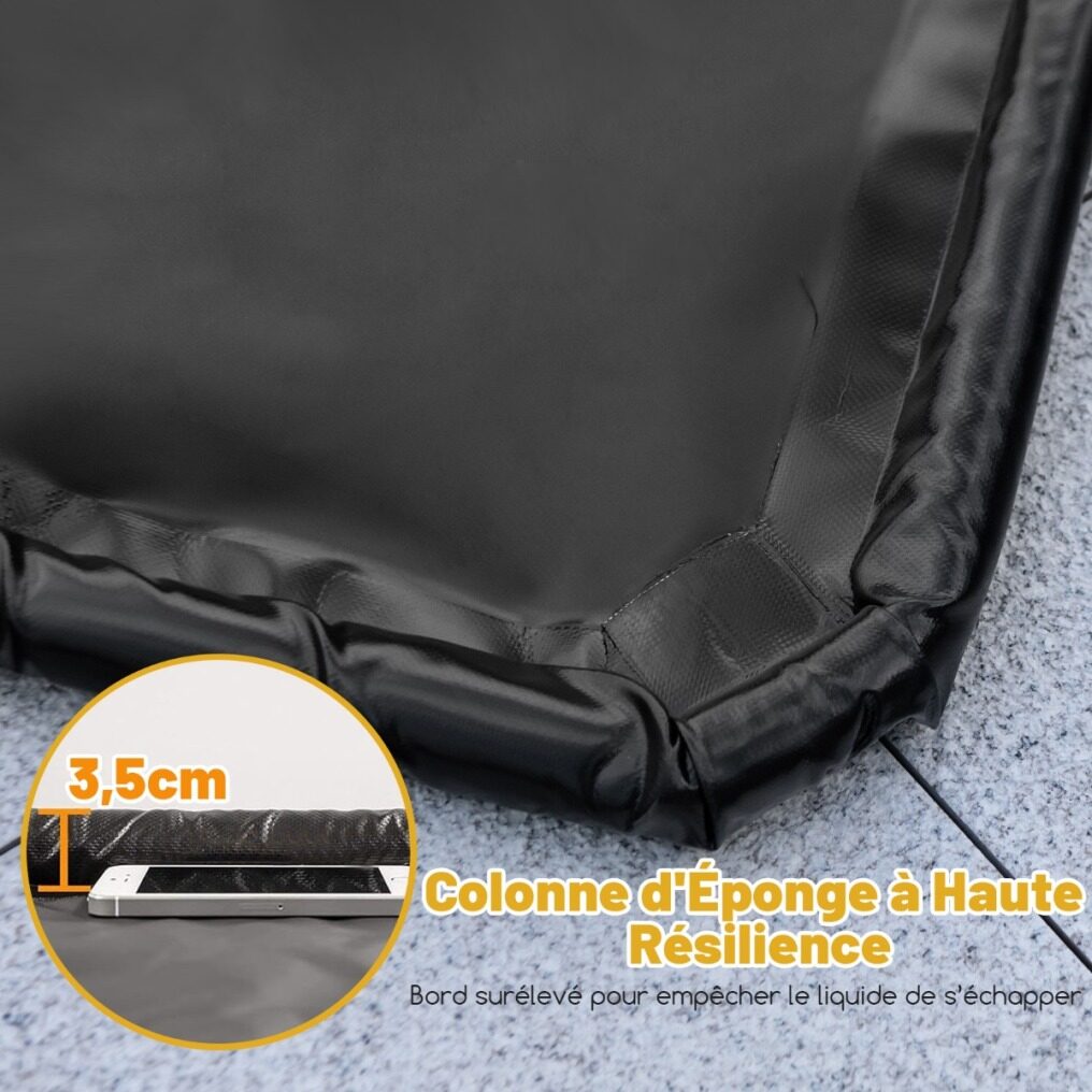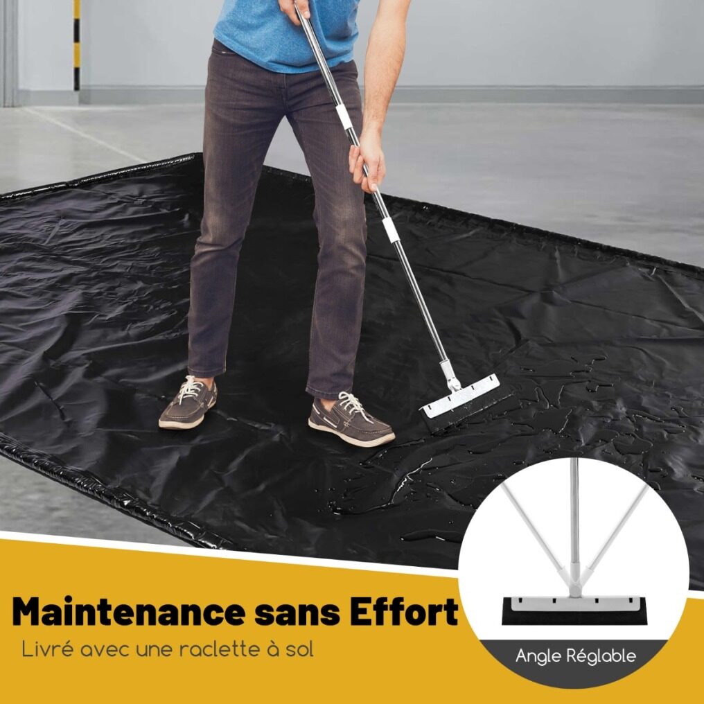 Protect your garage floor from dirt, water, snow, mud, and oil with this garage mat. Its high-resilience column ensures no liquids escape. With its premium PVC surface, this mat is not only waterproof and non-slip, but also tear-resistant for long-lasting use. In addition, we provide a bonus floor squeegee for easy maintenance, with an adjustable angle blade for added convenience. Easy installation is made possible with complete accessories and 8 double-sided adhesive strips.