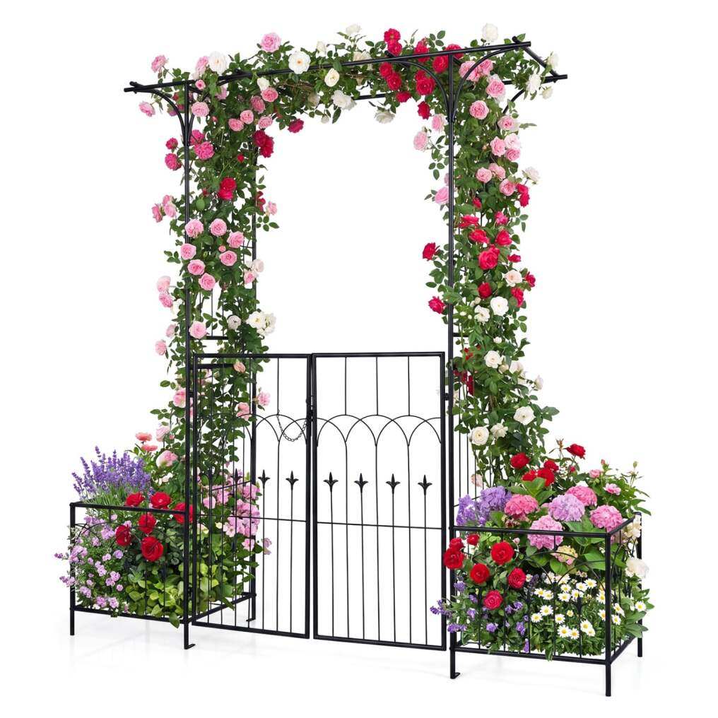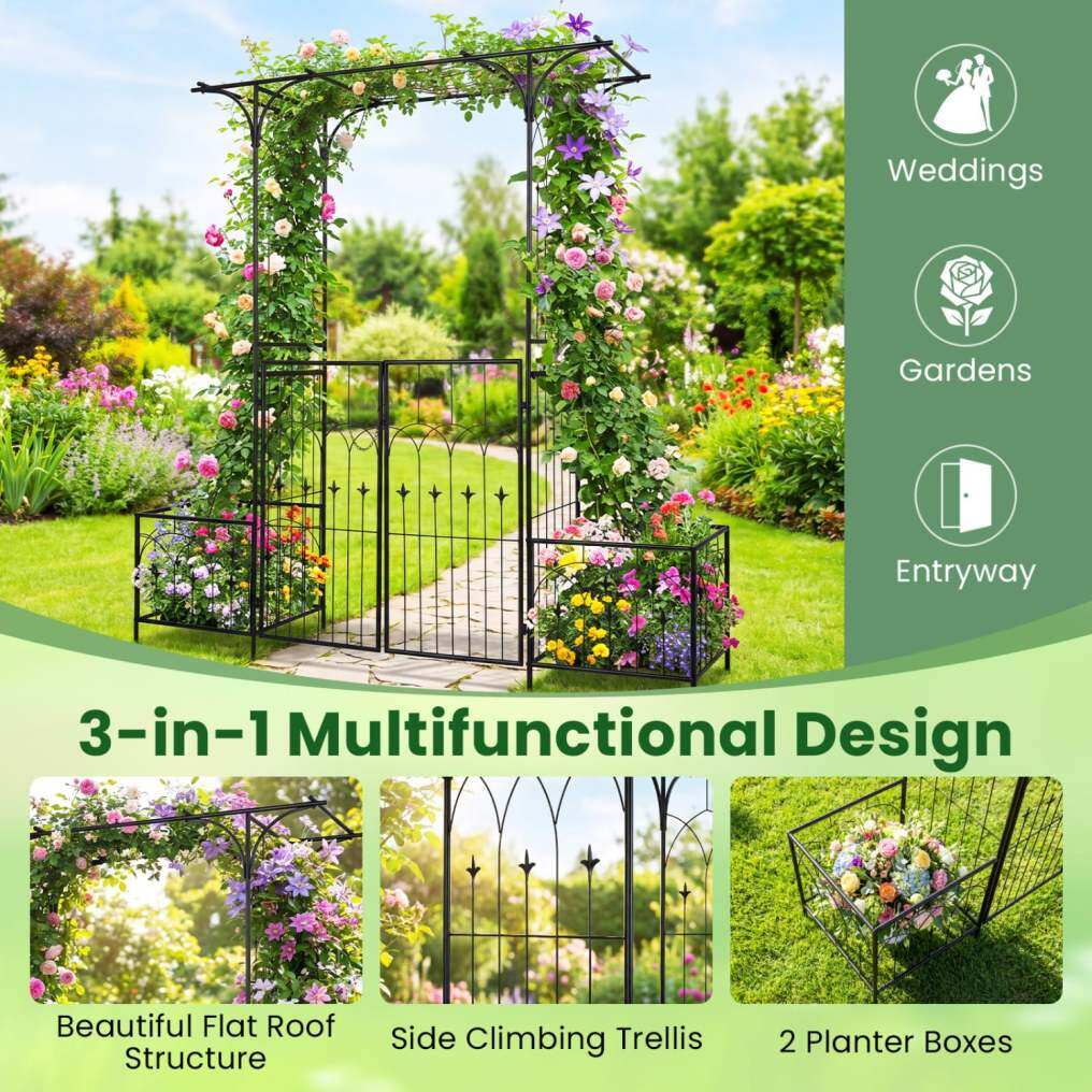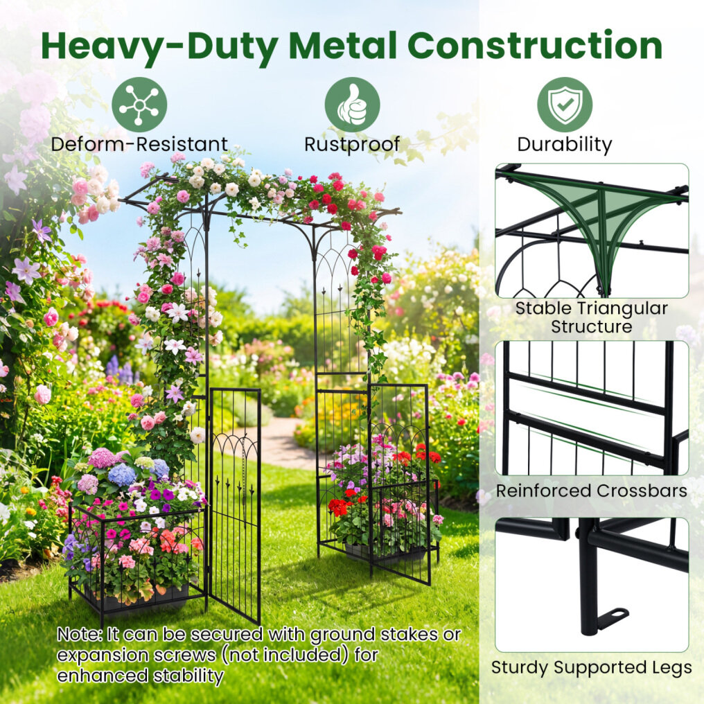 ● Functional Side Planter Boxes: This garden arbor with planter boxes combines an extended flat top with 2 side planting areas, allowing you to grow flowers, vines, and greenery while creating a charming entrance that enhances your outdoor landscape.