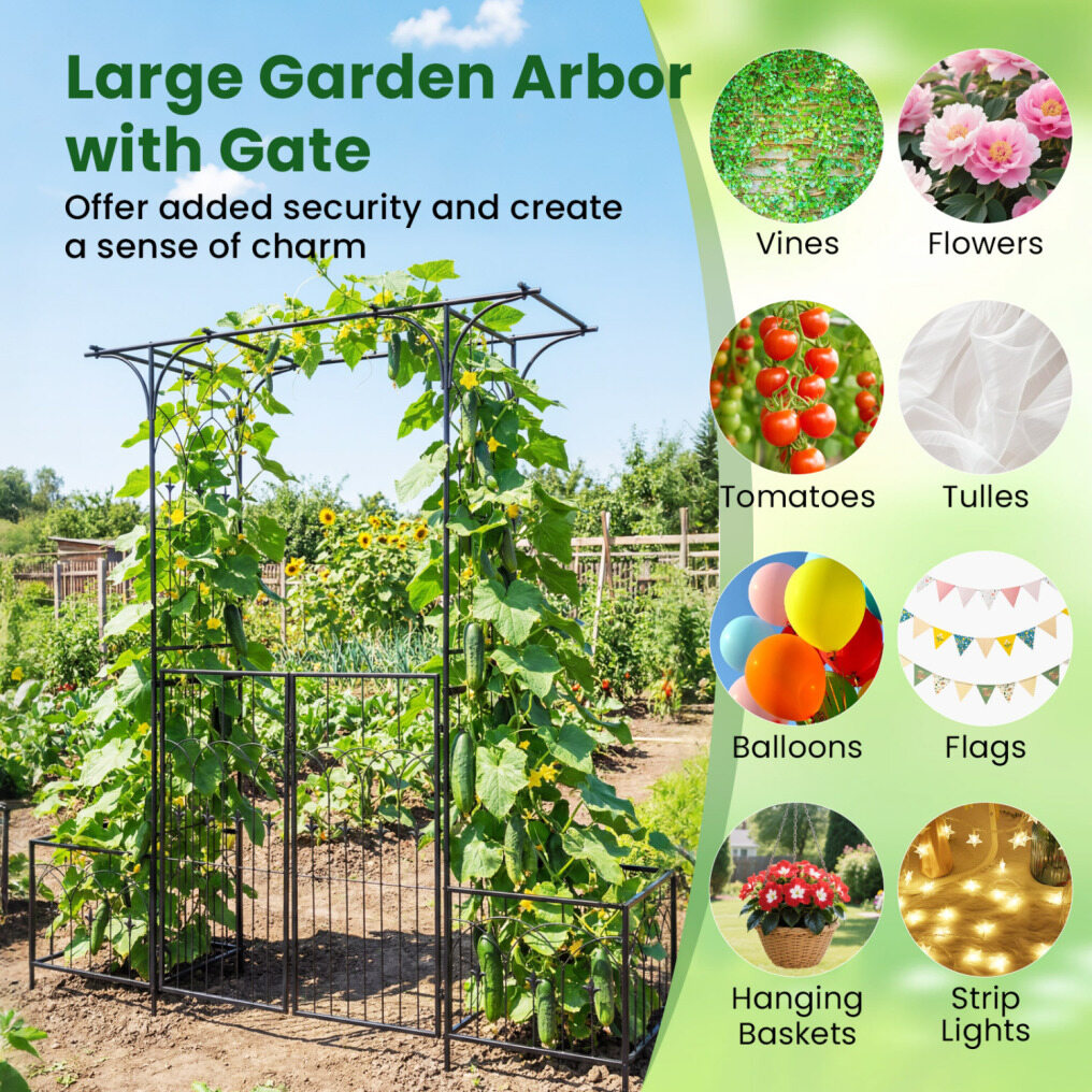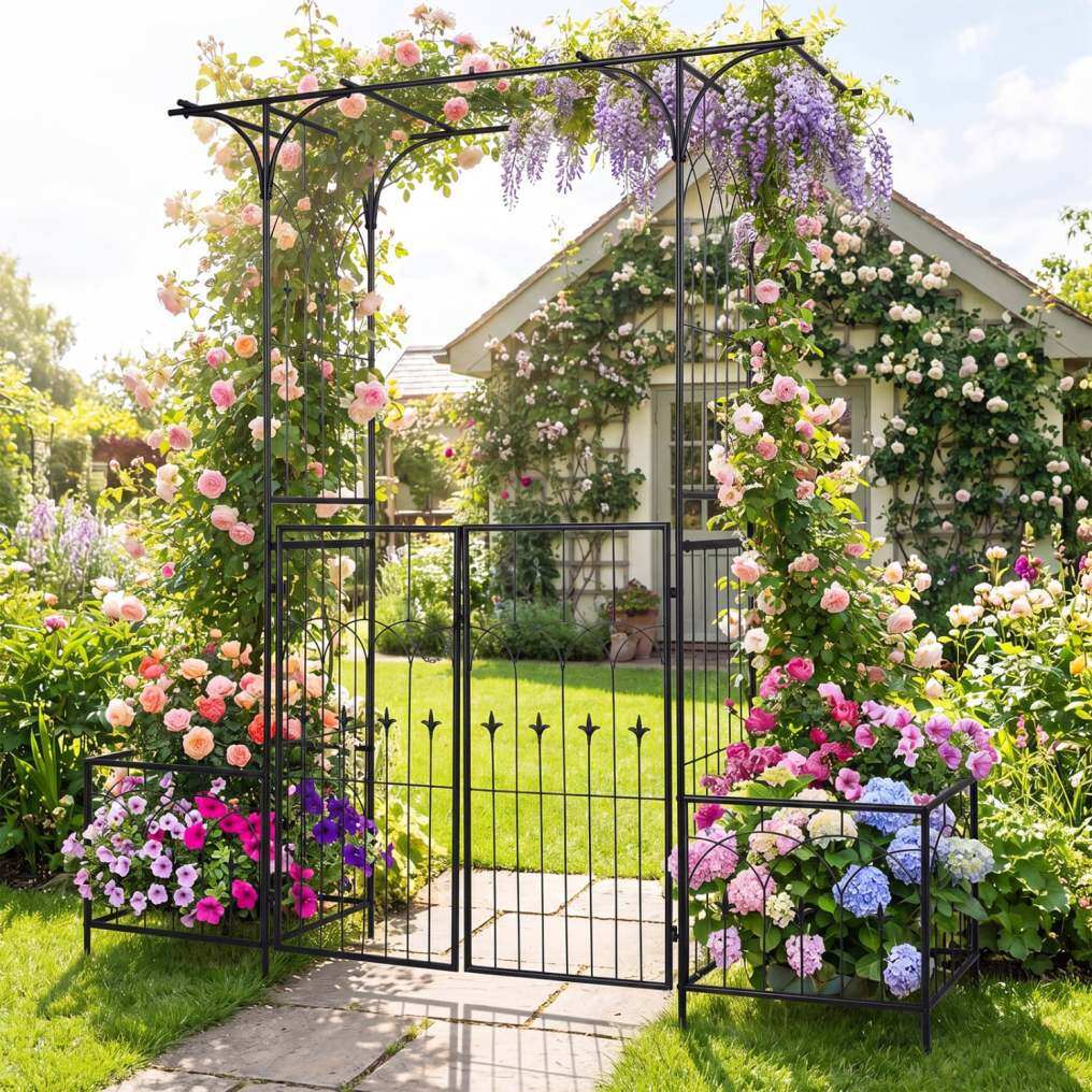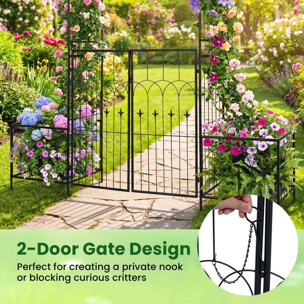 ● 2-Door Gate with Secure Latch: This large garden arch with gate features a stylish double-door design with a convenient latch, helping define your garden space while offering added security and creating a sense of privacy and charm.