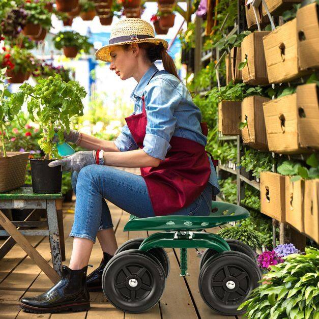 ● Ergonomic and Swivel Seat: The 17.5" wide seat is designed in a unique shape to reduce fatigue for those gardening enthusiasts who have to work long hours. More importantly, the seat is 360°swiveling, allowing you to turn to any directions for convenient work.