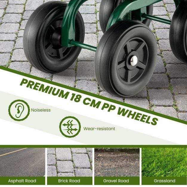 ● Move Around with Ease: Equipped with 7" wear-resistant PP tires, the rolling garden scooter can move effortlessly on kinds of roads, such as asphalt road, brick road, gravel road or grassland. Therefore, it is convenient for you to work in your garden, lawn or yard.