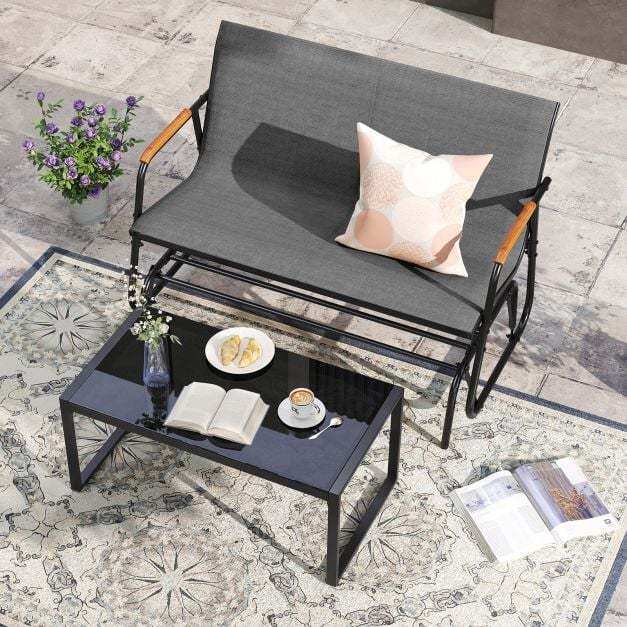 High-Quality Seat Fabric: Crafted from breathable, rip-resistant fabric, the seat of the gliding chair is also quick-drying. Such design makes the bench both comfortable and withstand extended outdoor use.