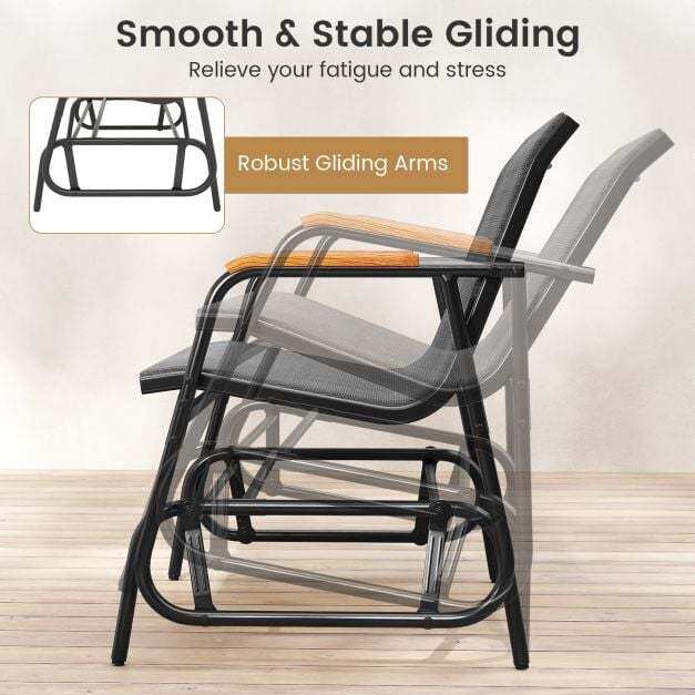 Wide Applications: Versatile and stylish, this wide gliding chair is perfect for any outdoor setting such as porch, backyard, or poolside. Note: Please avoid rain exposure for prolonged service life.