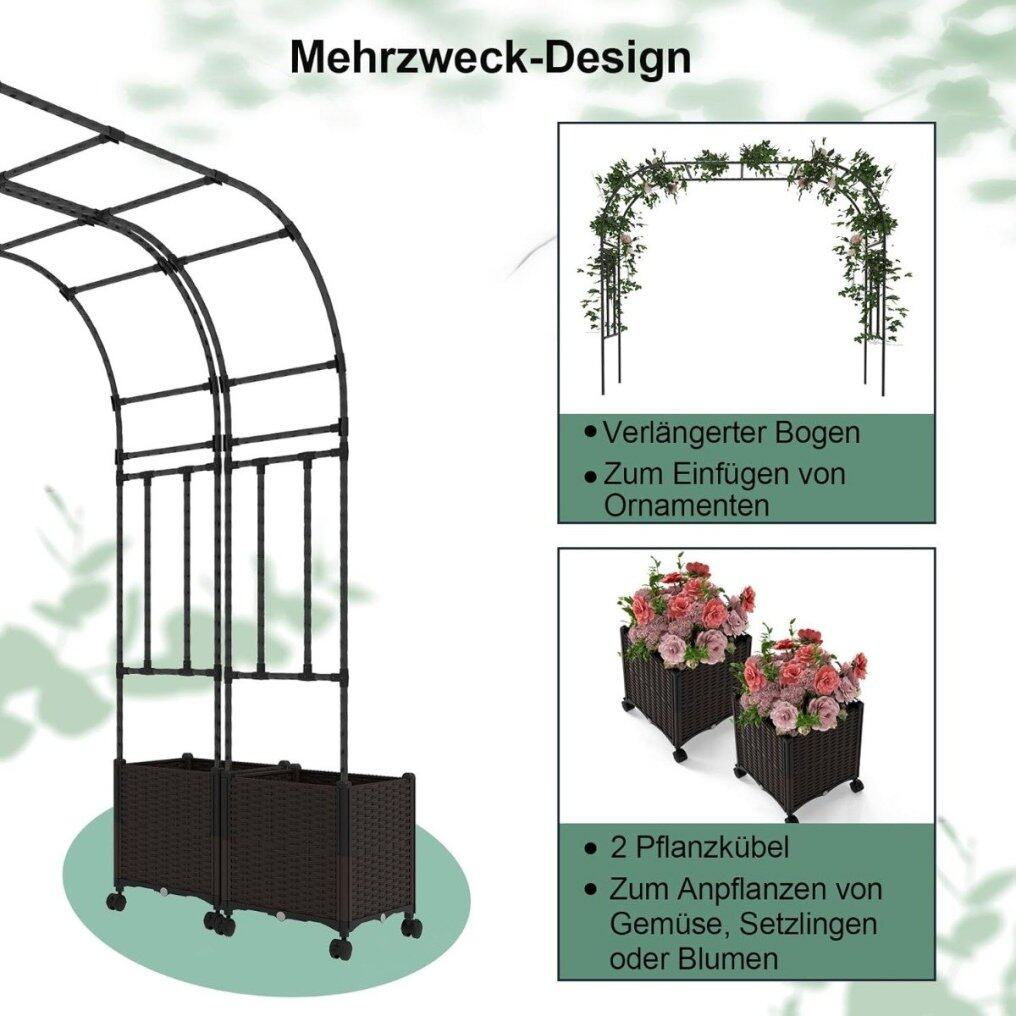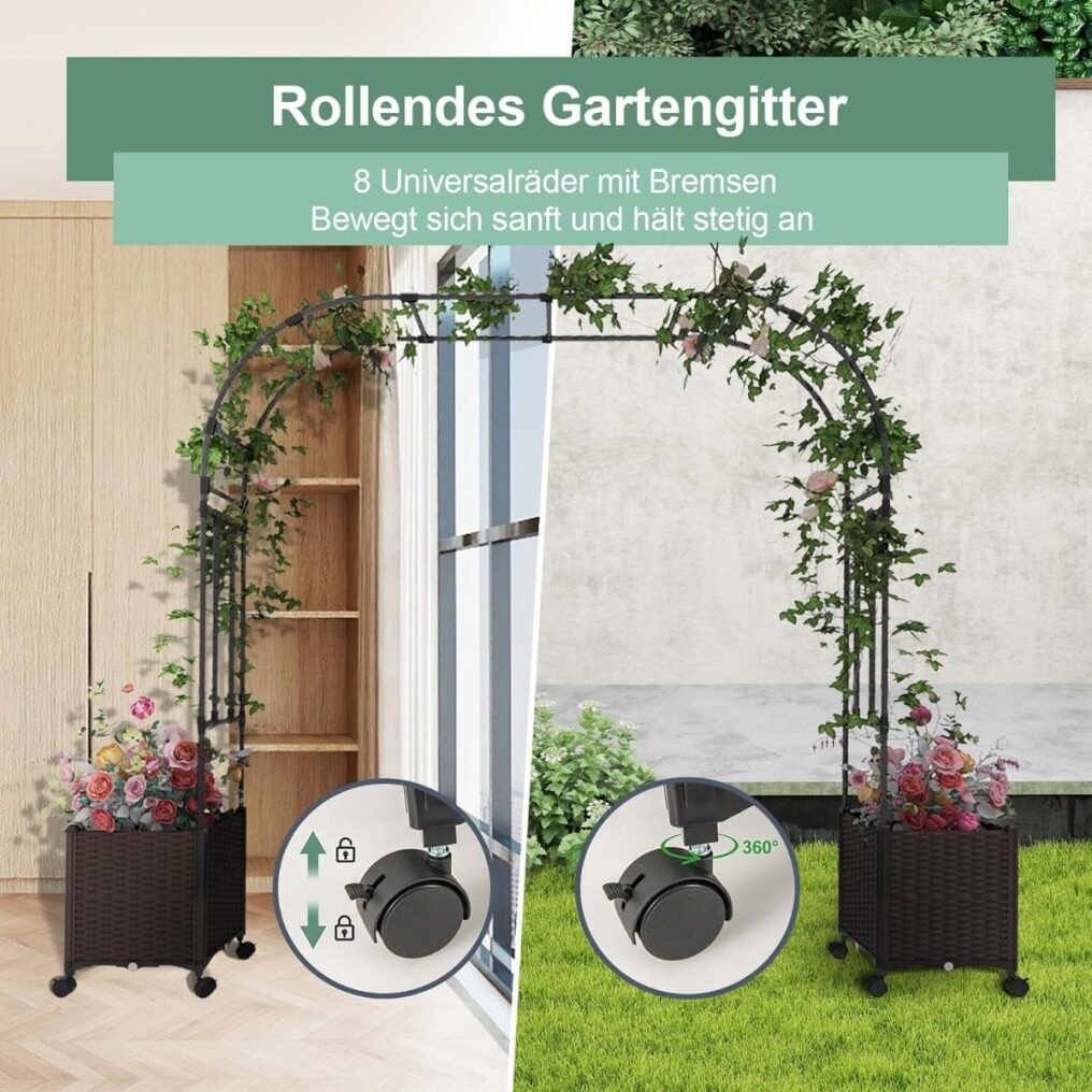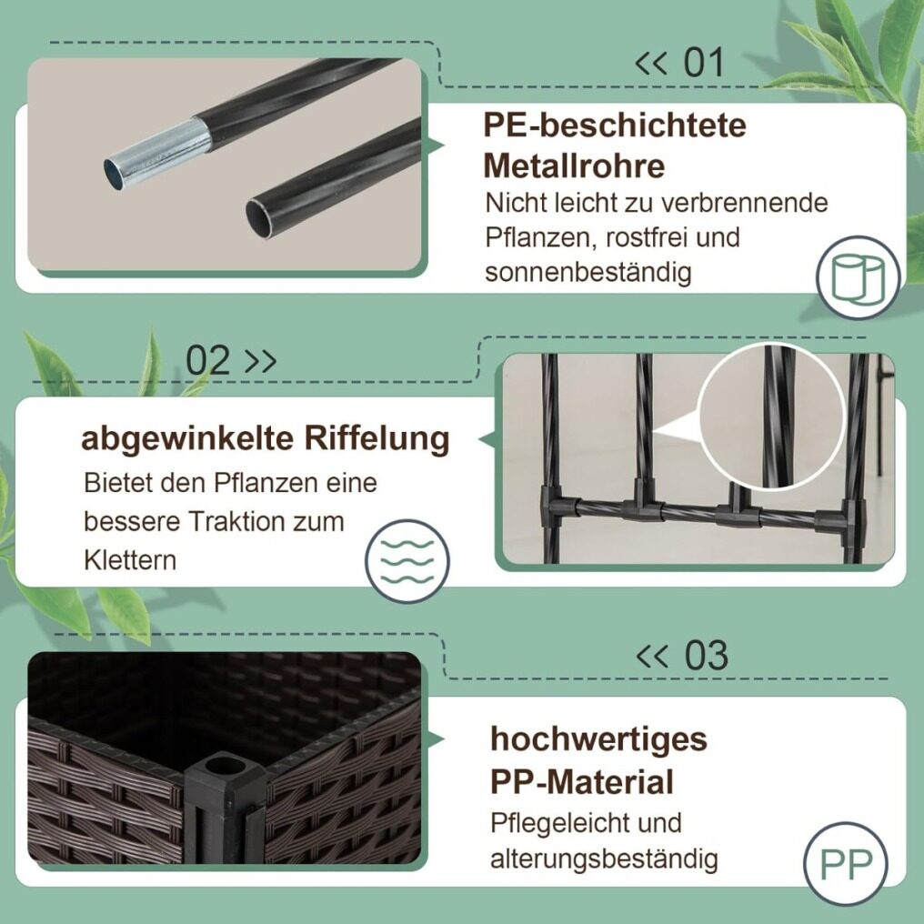 Improved Structure & Selected Materials: The trellis arch is constructed of PE-coated metal tubes that protect plants from heat and ensure rust-resistant, long-lasting use. The planter boxes are primarily made of high-quality PP material, known for its easy maintenance and high stability.