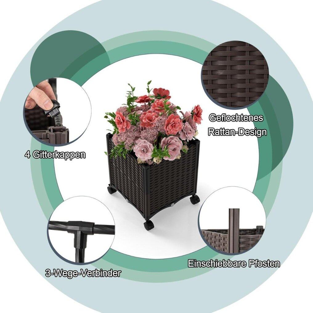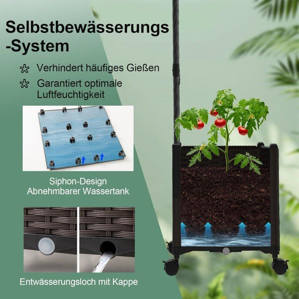 Self-watering & drainage system: Thanks to the integrated self-watering system, frequent manual watering is no longer necessary. Furthermore, the planters are equipped with a water separation net and drainage holes to ensure optimal watering of the plants without the risk of overwatering.