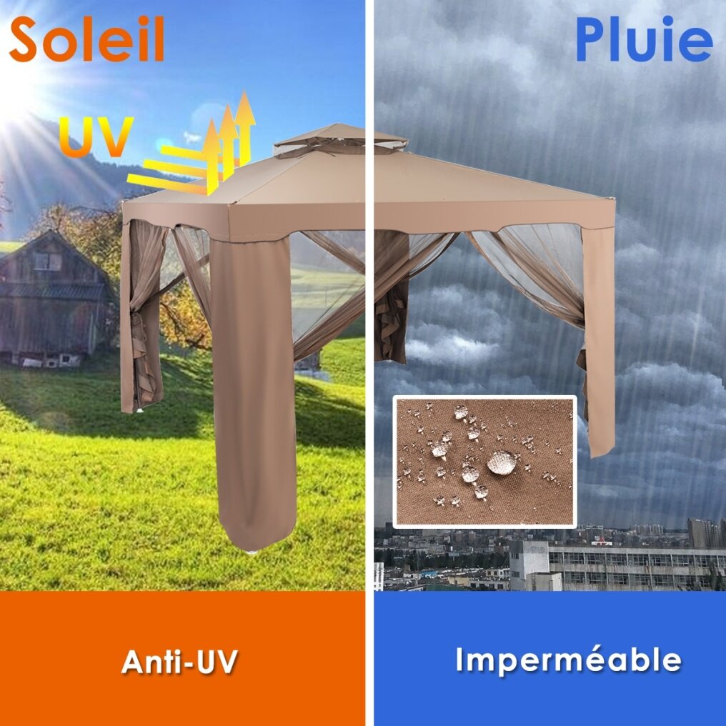 Protection from solar radiation: The 3 x 3 meter gazebo offers you plenty of shade for a variety of outdoor activities in the hot summer and is a wonderful addition to your garden, terrace or backyard.