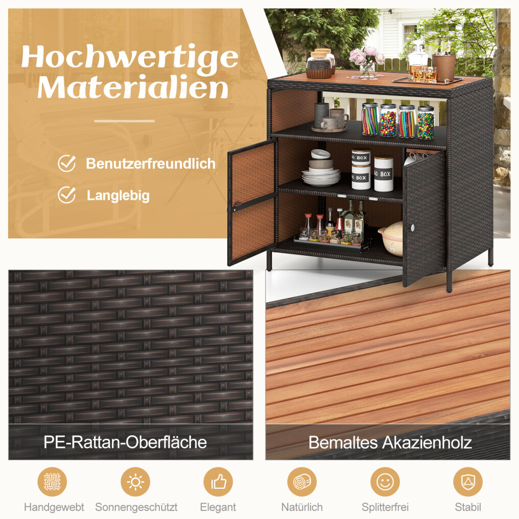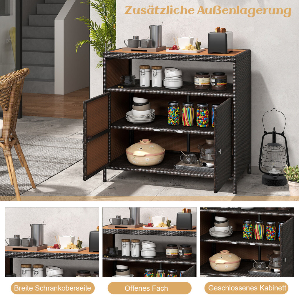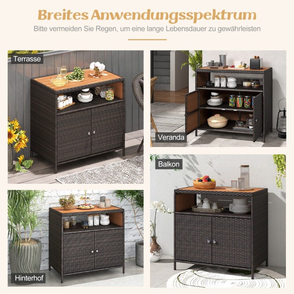 Perfect for outdoor use: Designed to blend seamlessly into a variety of outdoor settings, this rattan sideboard is the ideal addition to your patio, deck, garden, or pool area. To prolong its lifespan, please avoid leaving the product outdoors on rainy days.