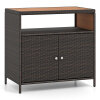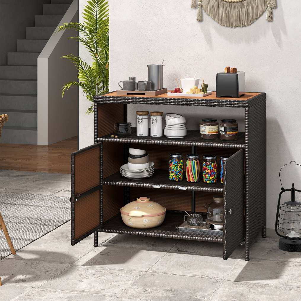 Ample storage space: Maximize your outdoor organization with the rattan storage cabinet, which features a wide cabinet top for displaying items, an open compartment for frequently used goods, and a 2-door closed cabinet to secure outdoor essentials.