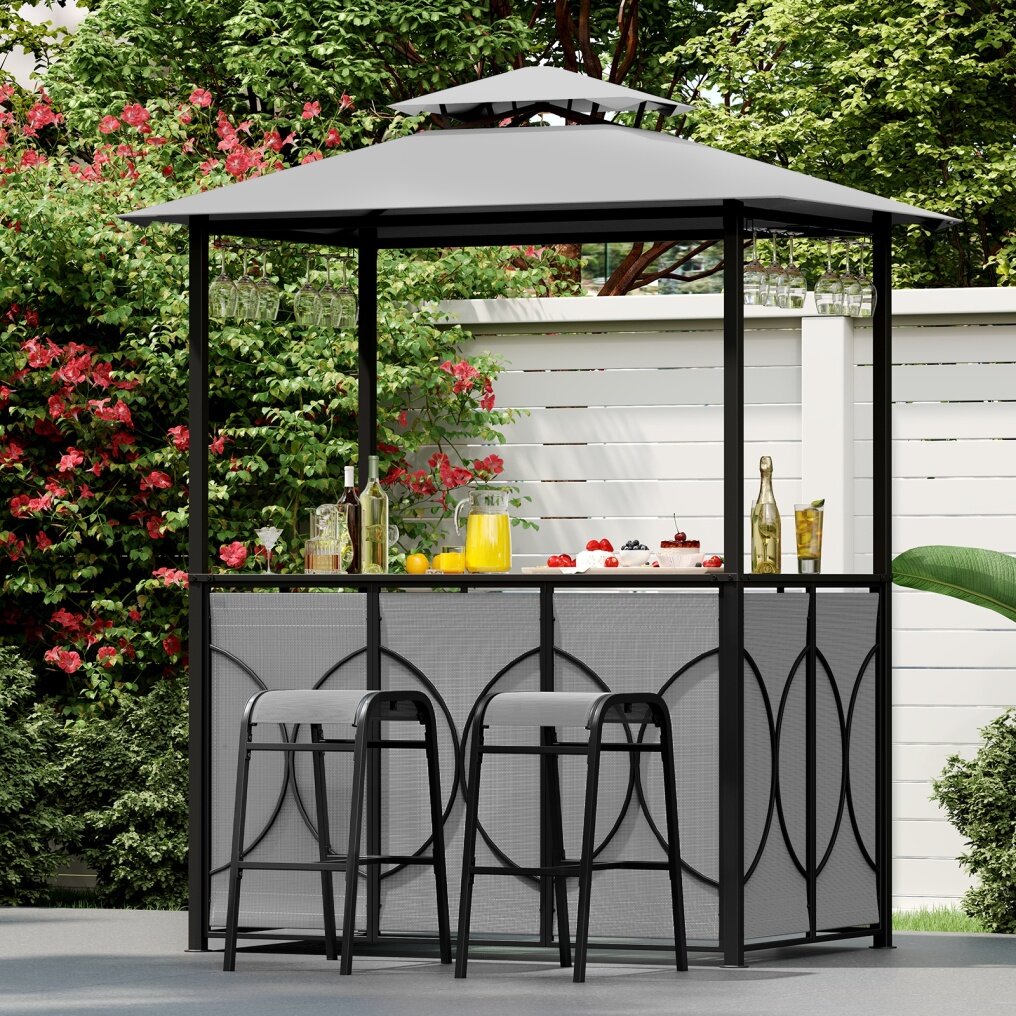 ● Space-Saving Design: The 2 bar stools can be conveniently stored inside the gazebo when not in use, saving space and maintaining a tidy outdoor area. This 3-piece patio bar set is suitable for various scenarios such as backyard, patio and poolside.