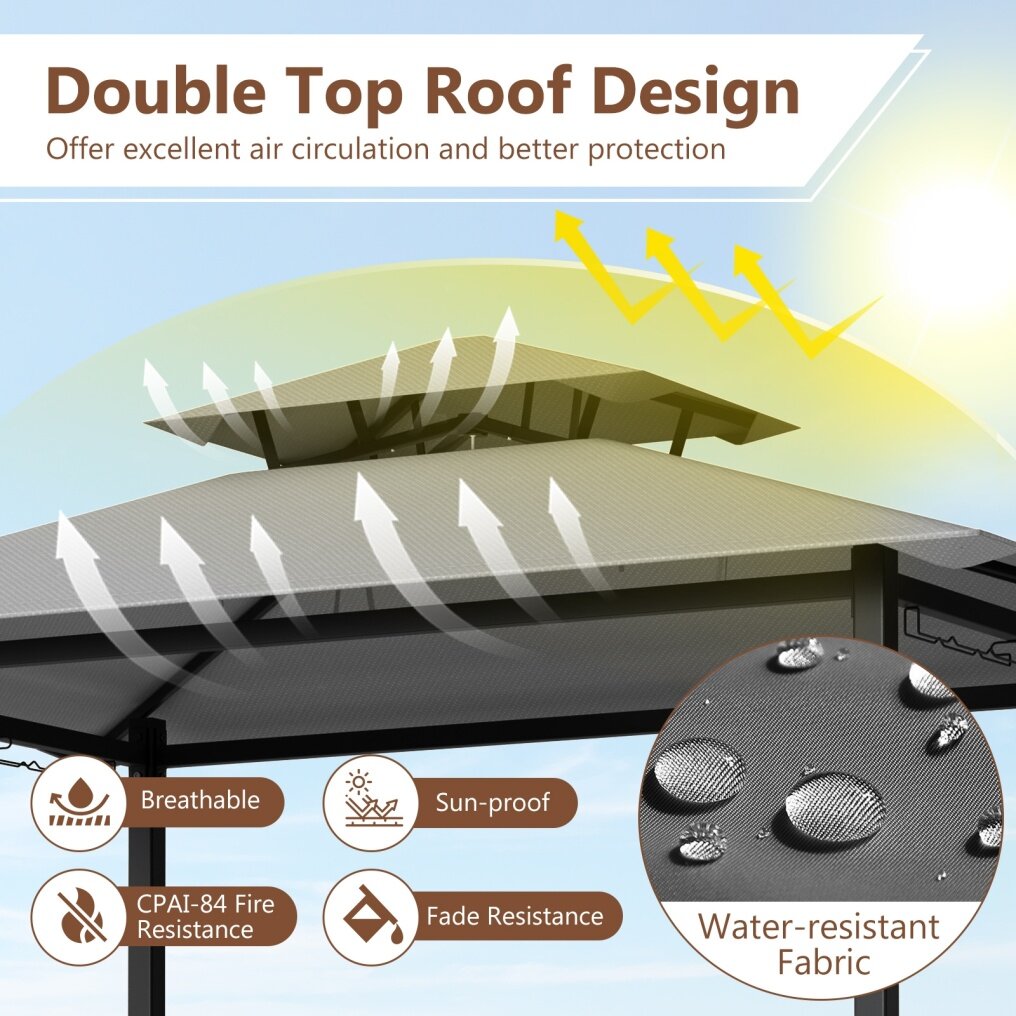 ● Double Roof and Premium Fabric: This patio bar set comes with a innovative double top roof design, which offers excellent air circulation. Besides, the canopy is crafted from the sun-proof and water-proof fabric, ensuring comfort and durability in any weather.