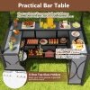 ● Large Storage Space: The wide tempered glass tabletop and 2-tier slatted metal shelves on 3 sides provide ample room for food, drinks, and utensils, while the 4-row top glass holders keep your wine glasses organized and within reach. Plus, this shelter also equips a hook to holding a lamp or a radio.