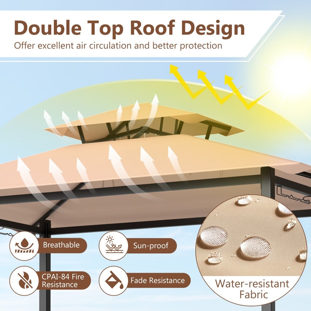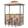 ● Double Roof and Premium Fabric: This patio bar set comes with a innovative double top roof design, which offers excellent air circulation. Besides, the canopy is crafted from the sun-proof and water-proof fabric, ensuring comfort and durability in any weather.