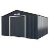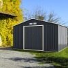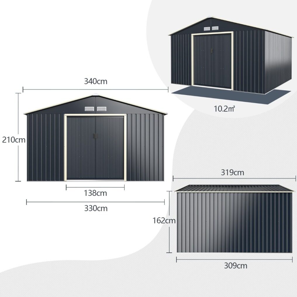 Our storage shed is specially designed for tiding up your outdoor space. This walk-in shed can meet your multiple purposes, using it as a tool room, a garbage chamber, a pet house and an outdoor rest place. Featured with color coated steel, this metal storage shed is sturdy and durable for long-term outdoor use. All sheets are closely connected with each other with metal screws, protecting stuff from bad weather. Besides, the double sliding door with lock hole allows you to select a matching lock and enhance stuff safety. And there are 4 vents to increase the inside air ventilation for better storing items. This roomy storage shed comes with 10.2㎡/6.54㎡/3.67㎡floor space, meeting all your storage needs. With the detailed instruction, you can assemble the shed by following the installation steps carefully.