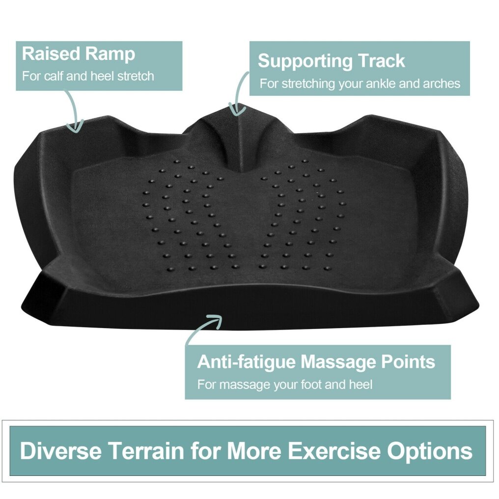 The surface of this standing mat is not flat and designed with diverse terrain and massage points, which enable the standing mat to promote the blood circulation and relieve the fatigue and pressure of muscles while standing. Made of premium PU material, this anti-fatigue standing mat provides ergonomic support and long service life. Also, the anti-skid groove base effectively prevents the floor mat from sliding while using. Except in the office, this ergonomic floor mat is commonly used in many locations, including home, kitchen, garage and more.