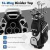 14-Way Divider Top: Featuring 14 full-length dividers with molded club locks, this golf cart bag ensures each club is securely held in place as well as prevents rattling and collisions. Please note that golf clubs are not included.
