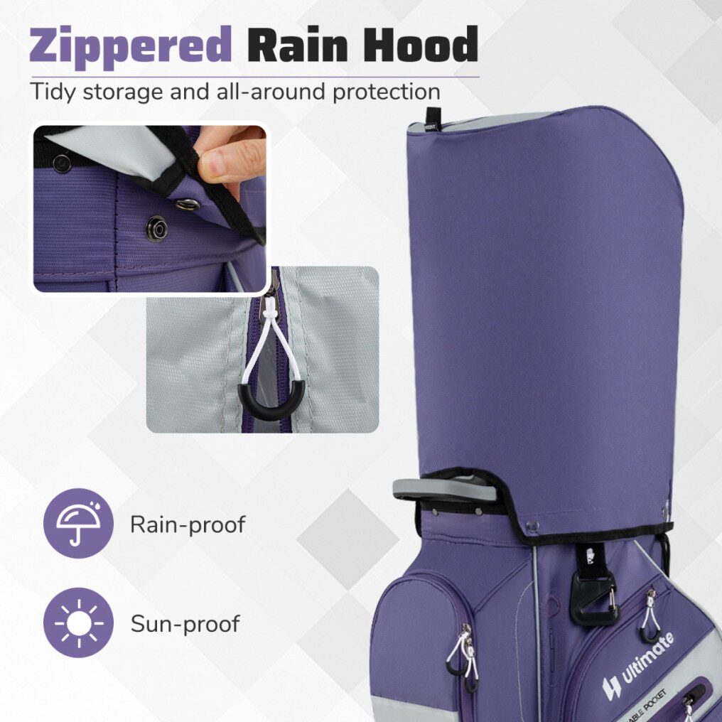 Weather protection: This golf bag comes with a zippered rain and sun-protective rain cover to protect your clubs from the elements. Plus, the umbrella holder keeps you prepared for unexpected rain showers.