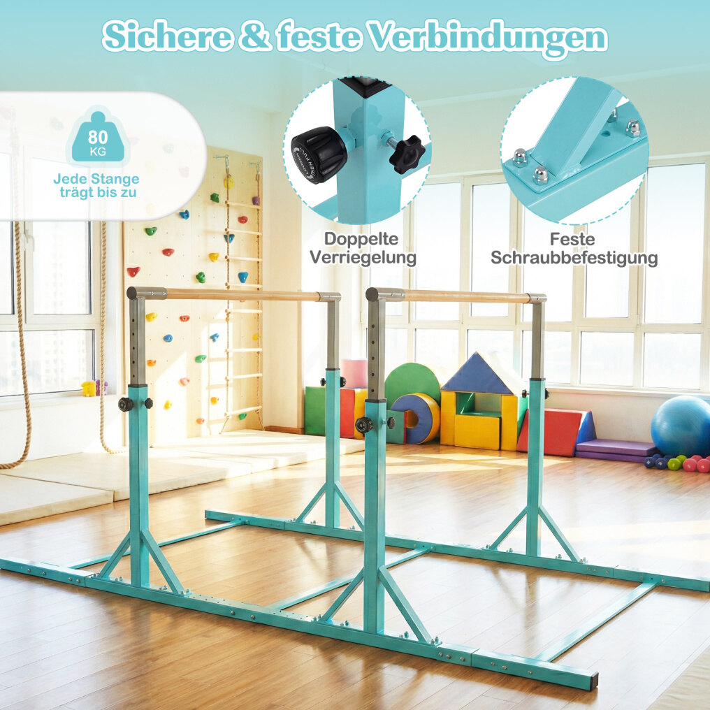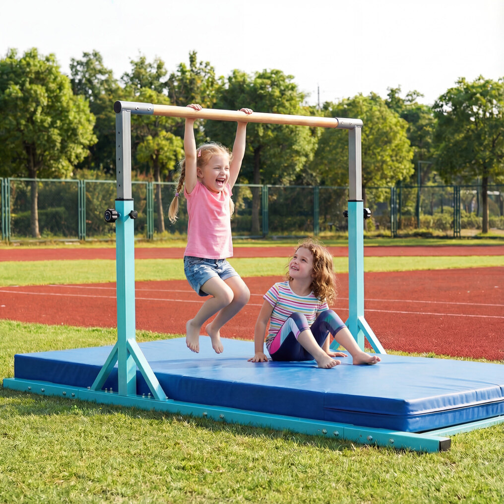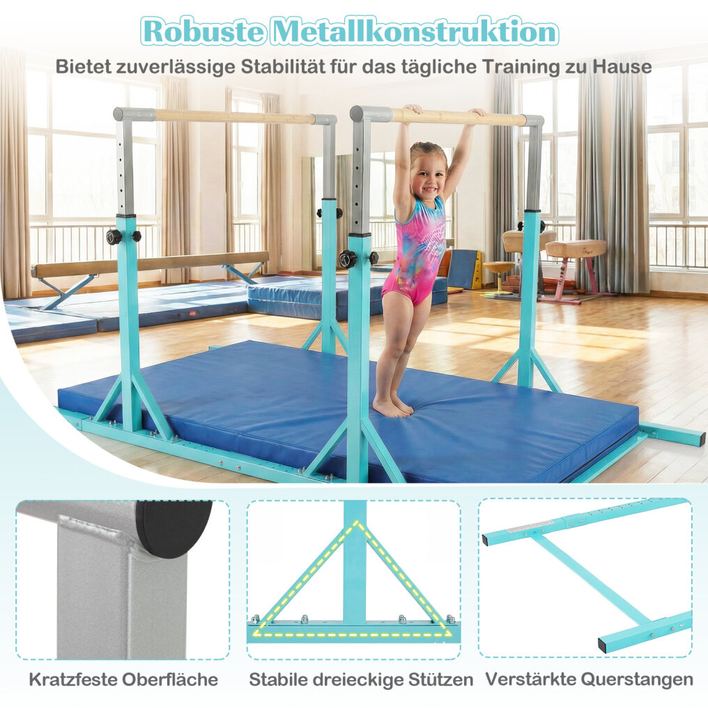 Suitable for indoor and outdoor use: These home gymnastic bars are suitable for both indoor and outdoor use. Ideal for playrooms, schools, clubs, or other training areas, they provide children with a safe place to practice their skills. It is recommended to place a gymnastics mat (not included) under the bars during use.