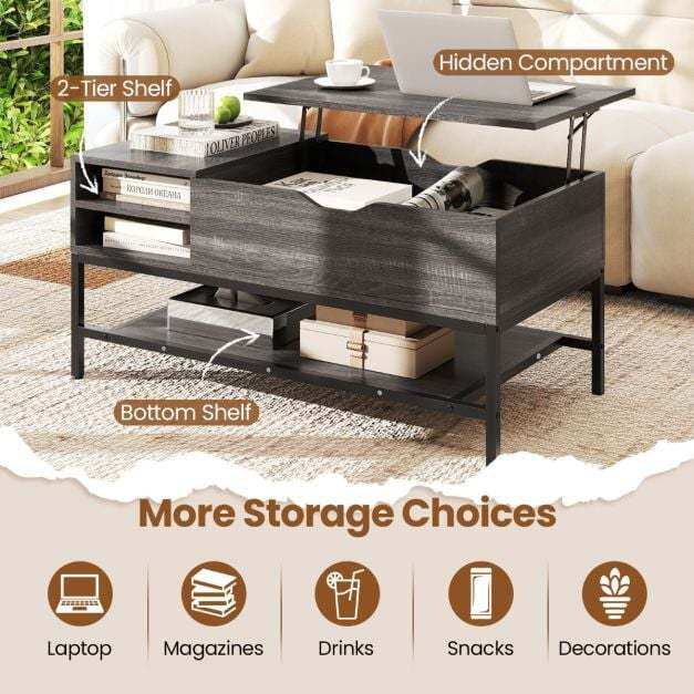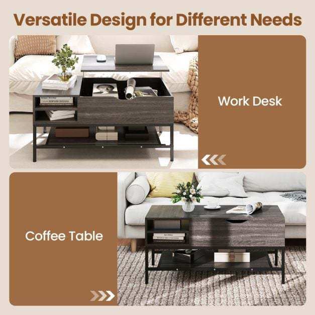 【Versatile Design for Different Uses】Transform your space with this versatile lift-top coffee table, perfect as a stylish centerpiece, practical workstation, or impromptu dining table. Its adaptable design meets a variety of needs.