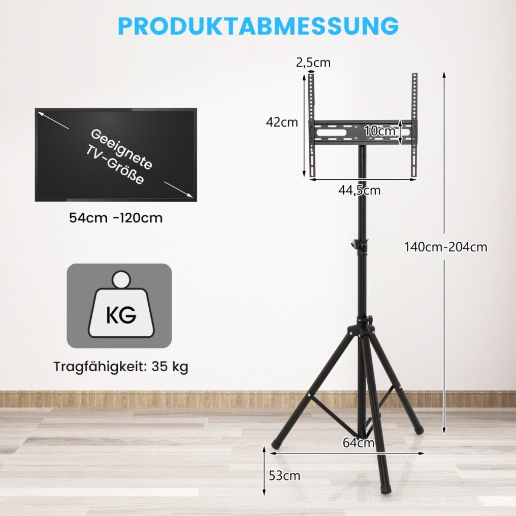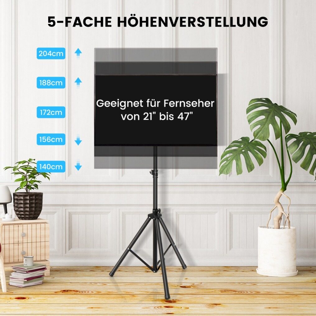 Stable and durable design: This display stand is made of high quality metal tube with plastic coated surface and is designed to last for a long time. Besides, the sturdy triangular support structure can support a weight of up to 35kg, which is suitable for various TV sizes from 21 to 47 inches.