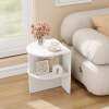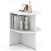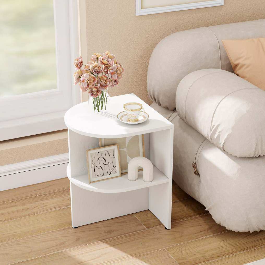 This small half round end table serves as a practical and stylish storage solution that doesn't compromise on space. With a compact size of 38 x 38 x 48 cm perfect for narrow spaces, it offers 2-tier shelves for convenient storage options. Meanwhile, its elegant semi circle design not only allows flexible combination into a larger coffee table, but also coordinates well with various indoor decorations, suitable for living room, bedroom and office. There are more thoughtful details including easy-to-clean surface and screw hole covers for both style and convenience. Plus, the anti-slip foot pads provide stability for your peace of mind.