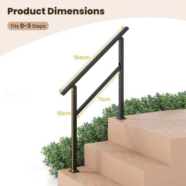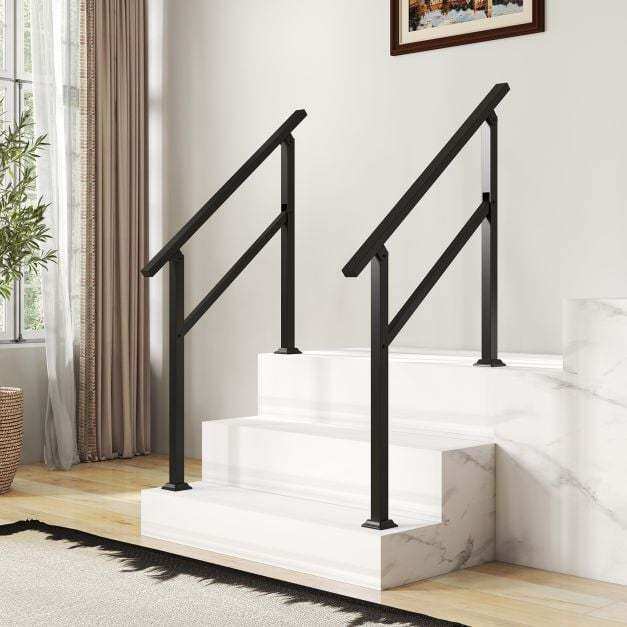 Flexible Angle Adjustment : With a versatile 42° adjustable angle, this railing is suitable for both flat surfaces and stairs with 0-2/3/4 steps. Note: Please check the stair dimensions before purchasing to ensure a proper fit.