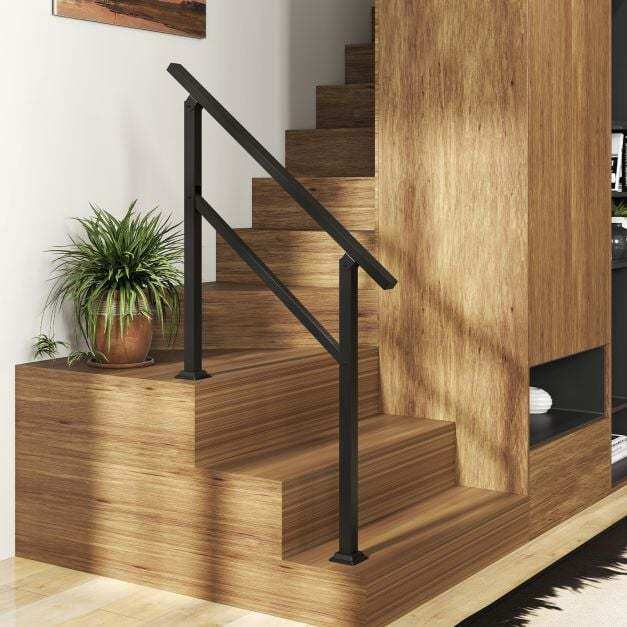 High-quality metal construction : Made of high-quality carbon and zinc steel, this handrail boasts a well-coated construction that is both robust and resistant to deformation. The stair railing supports up to 150 kg, ensuring increased safety.