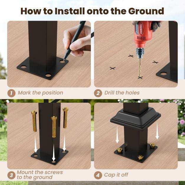 Ground Installation: Installing this handrail is straightforward. Simply mark the position, drill the holes, screw the screws into the ground, and secure the base to create a reliable and permanent fixture to increase stair safety.