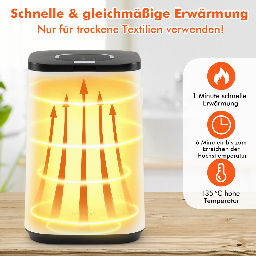 Fast & Even Heating: Feel the comforting warmth just 1 minute after switching it on – this towel warmer reaches a steaming 135°C in just 6 minutes! Thanks to its galvanized metal interior and double-walled lid, your towels are heated evenly and comfortably.