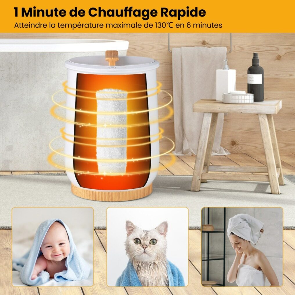 【Fast and Even Heating】Enjoy the convenience of 1-minute fast heating with our bucket towel warmer, designed to reach a maximum temperature of 130℃ in just 6 minutes. So you won't have to wait long to wrap yourself in the warmth of a freshly heated towel.