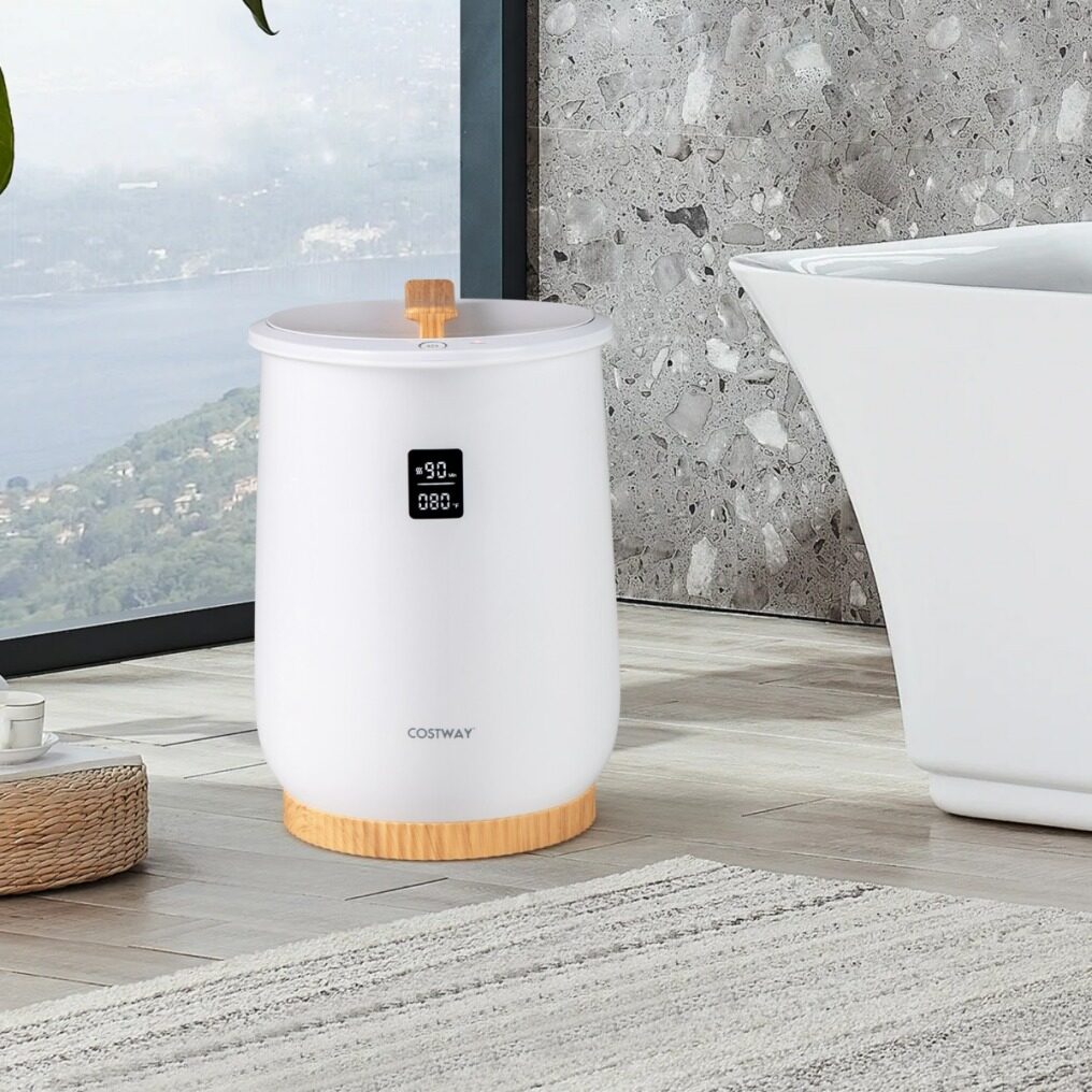 【Large Capacity】Featuring a large capacity of 20L, this spacious bucket-style towel warmer can accommodate up to 2 large bath towels or 1 blanket, 1 bathrobe, 1 pajamas, etc. It is a warm gift for your family and friends, whether for housewarmings, weddings, birthdays, anniversaries or other occasions.