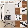 ● Well-Made Details: The enhanced X-shaped base and non-slip footpads of the swing stand ensure strong support. As for the swing chair, it possesses stable polyester hanging ropes and well-woven backrest ropes for both elegance and sturdiness.