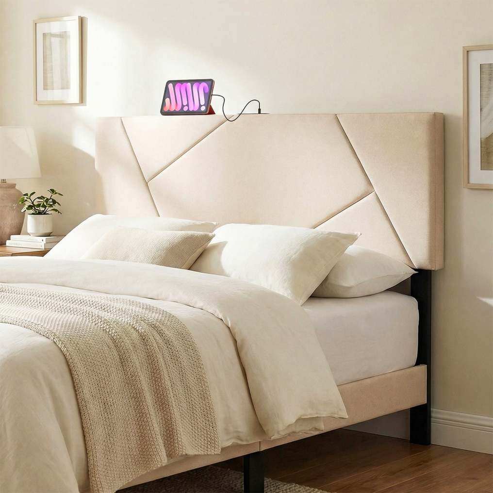 Comfortable Upholstered Headboard: Covered in skin-friendly polyester fabric and filled with elastic sponge filling, this upholstered headboard offers a soft touch that enhances your bedtime experience for reading, watching TV or just lounging.