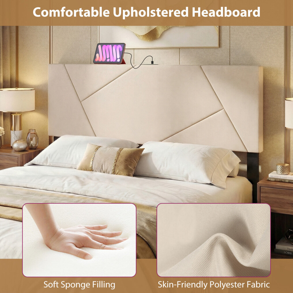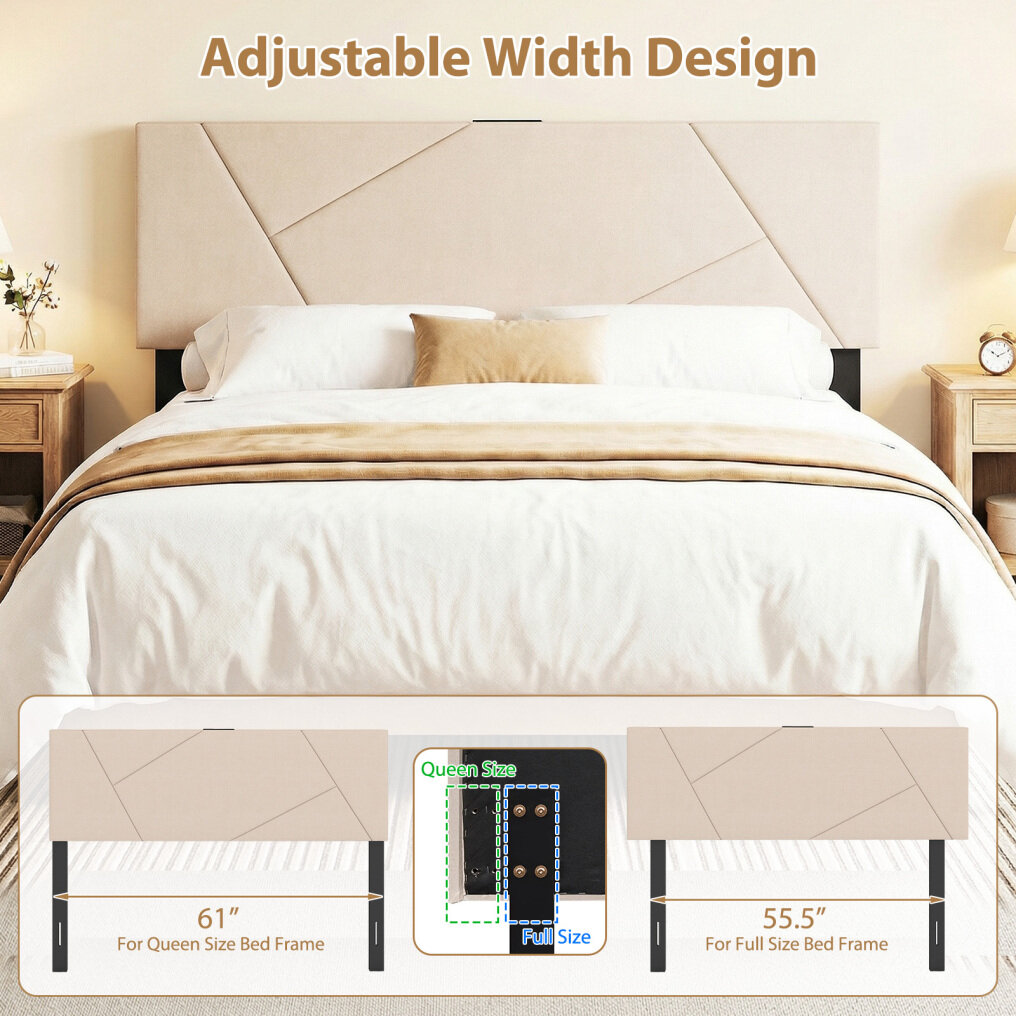 Headboard for Full Size Bed and Queen Geometric Upholstered Head Board-Beige
