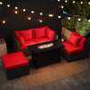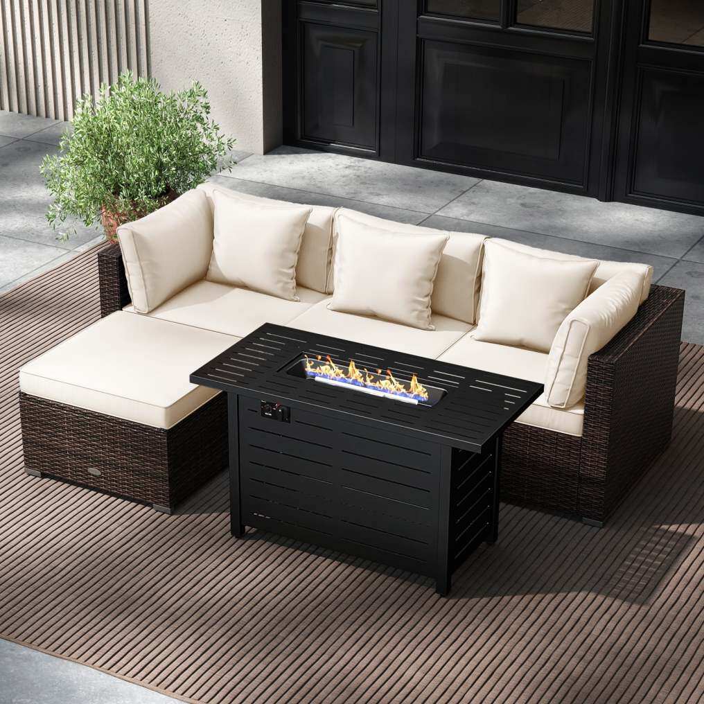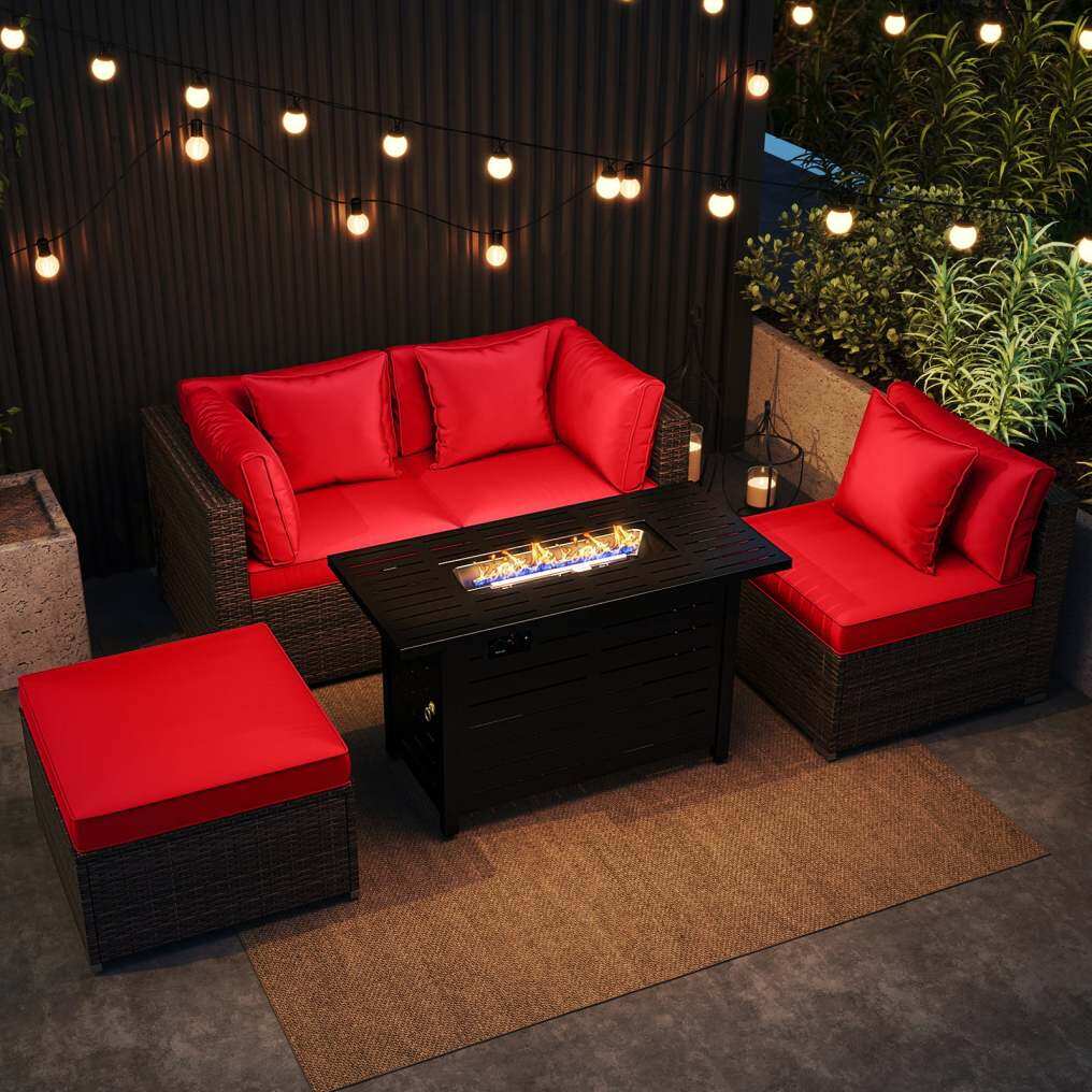 • Versatile Patio Set: Enjoy the flexibility of this 5-piece set featuring a armless chairs, 2 corner sofa, a ottoman and a firepit table. Rearrange the modular furniture to create the perfect outdoor seating arrangement on your patio or poolside.