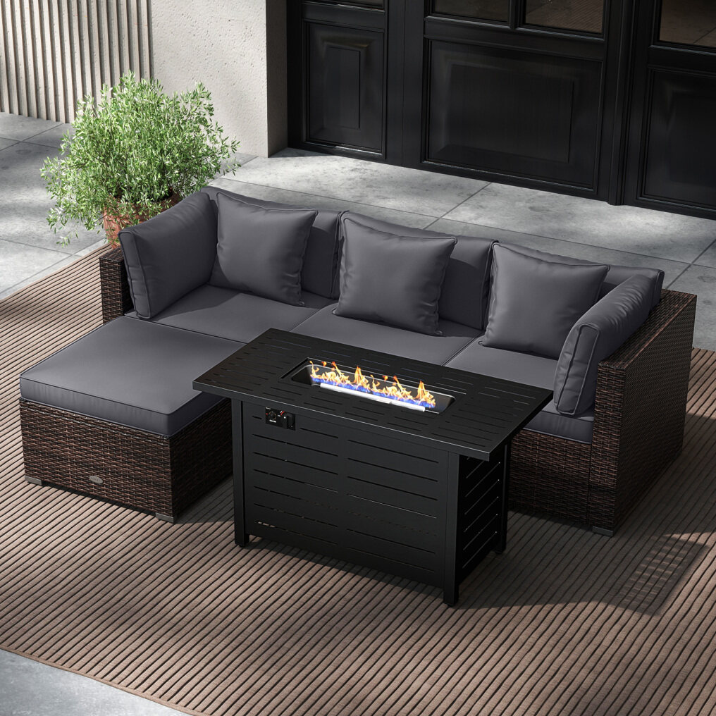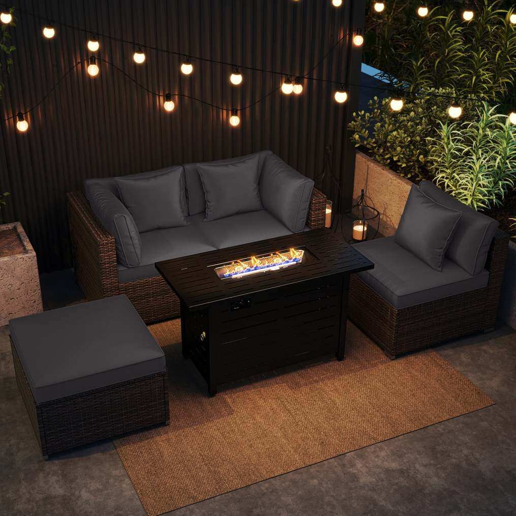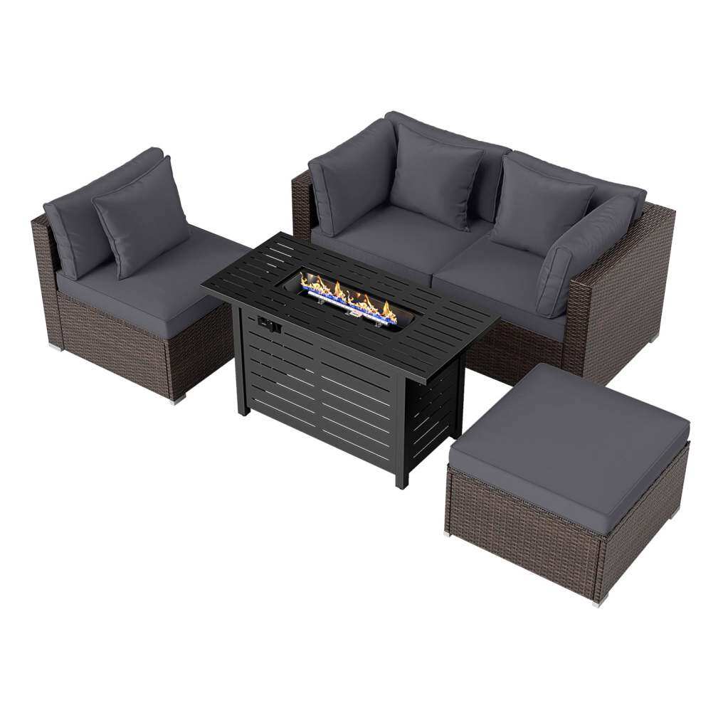 • Versatile Patio Set: Enjoy the flexibility of this 5-piece set featuring a armless chairs, 2 corner sofa, a ottoman and a firepit table. Rearrange the modular furniture to create the perfect outdoor seating arrangement on your patio or poolside.