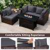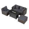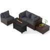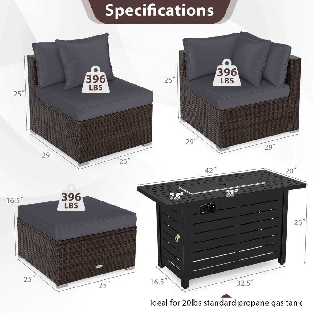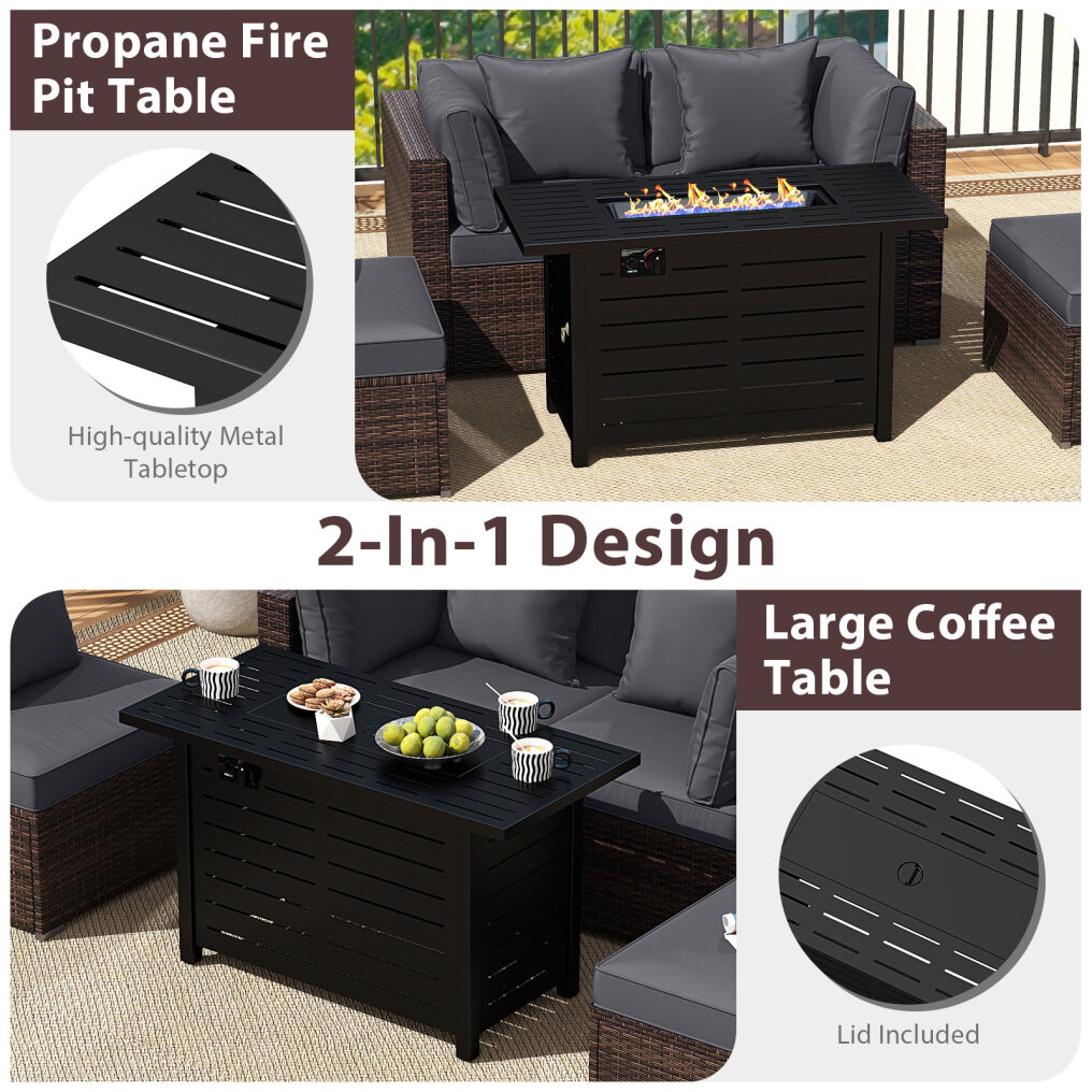 Heavy-duty Frame Rattan Sofa Set with 60000 BTU Firepit Table-Gray