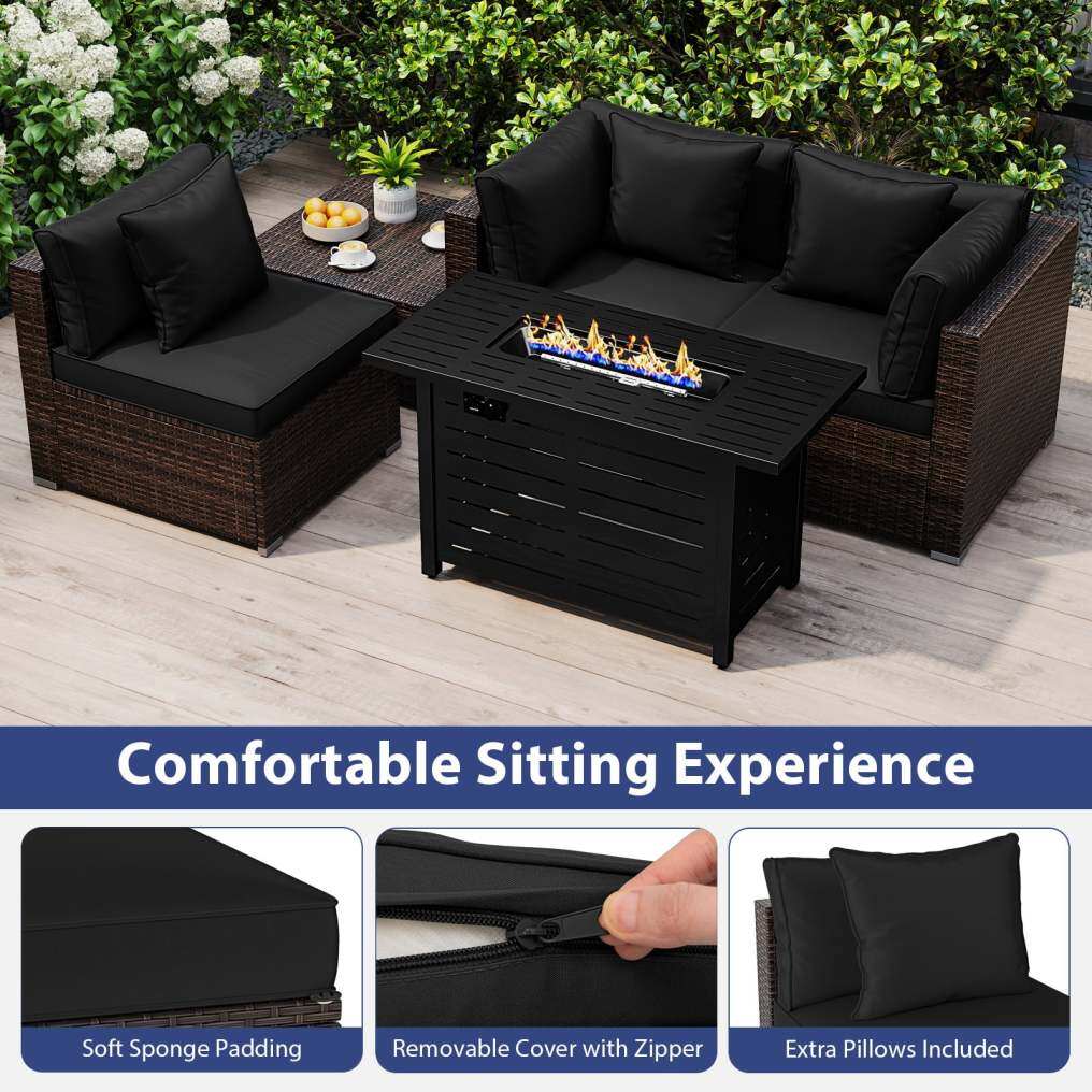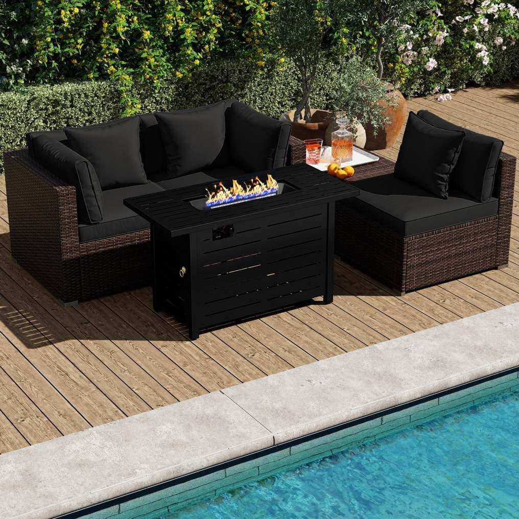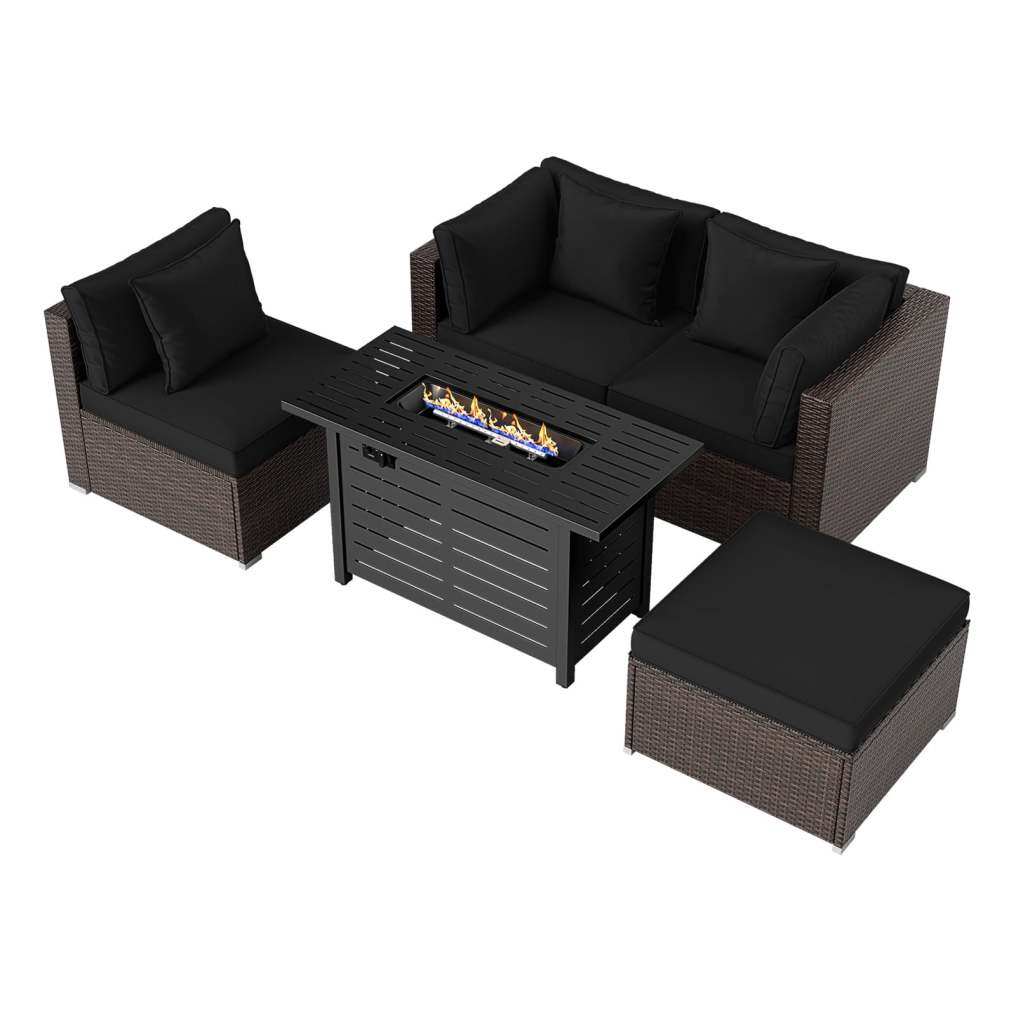 • Versatile Patio Set: Enjoy the flexibility of this 5-piece set featuring a armless chairs, 2 corner sofa, a ottoman and a firepit table. Rearrange the modular furniture to create the perfect outdoor seating arrangement on your patio or poolside.